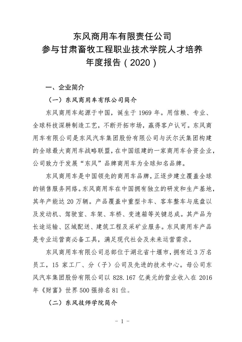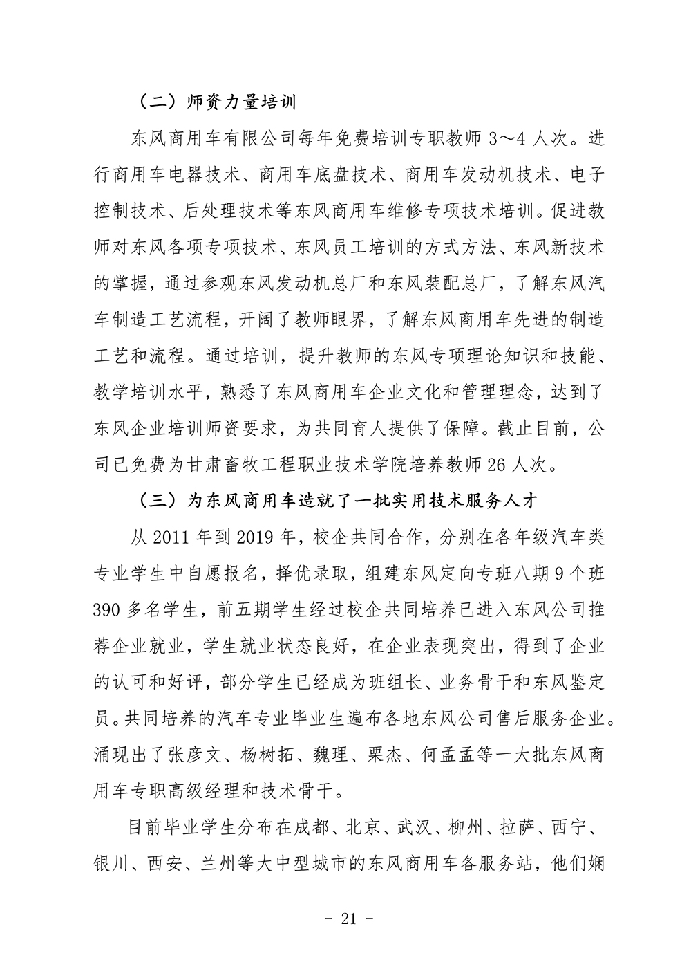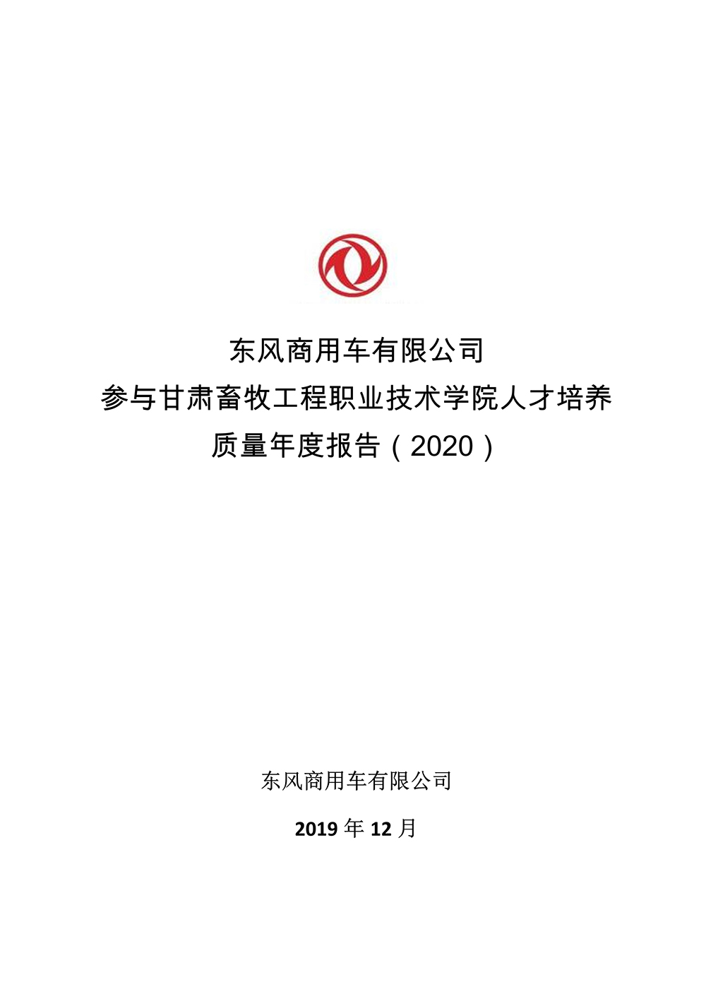 东风商用车有限公司参与甘肃畜牧工程职业技术学院人才培养质量年度报告(2020) 发布时间:2019-12-24 16:12:00 浏览次数:次 【字体:小 大】 终审:宣传部 分享到: 【打印正文】 相关信息