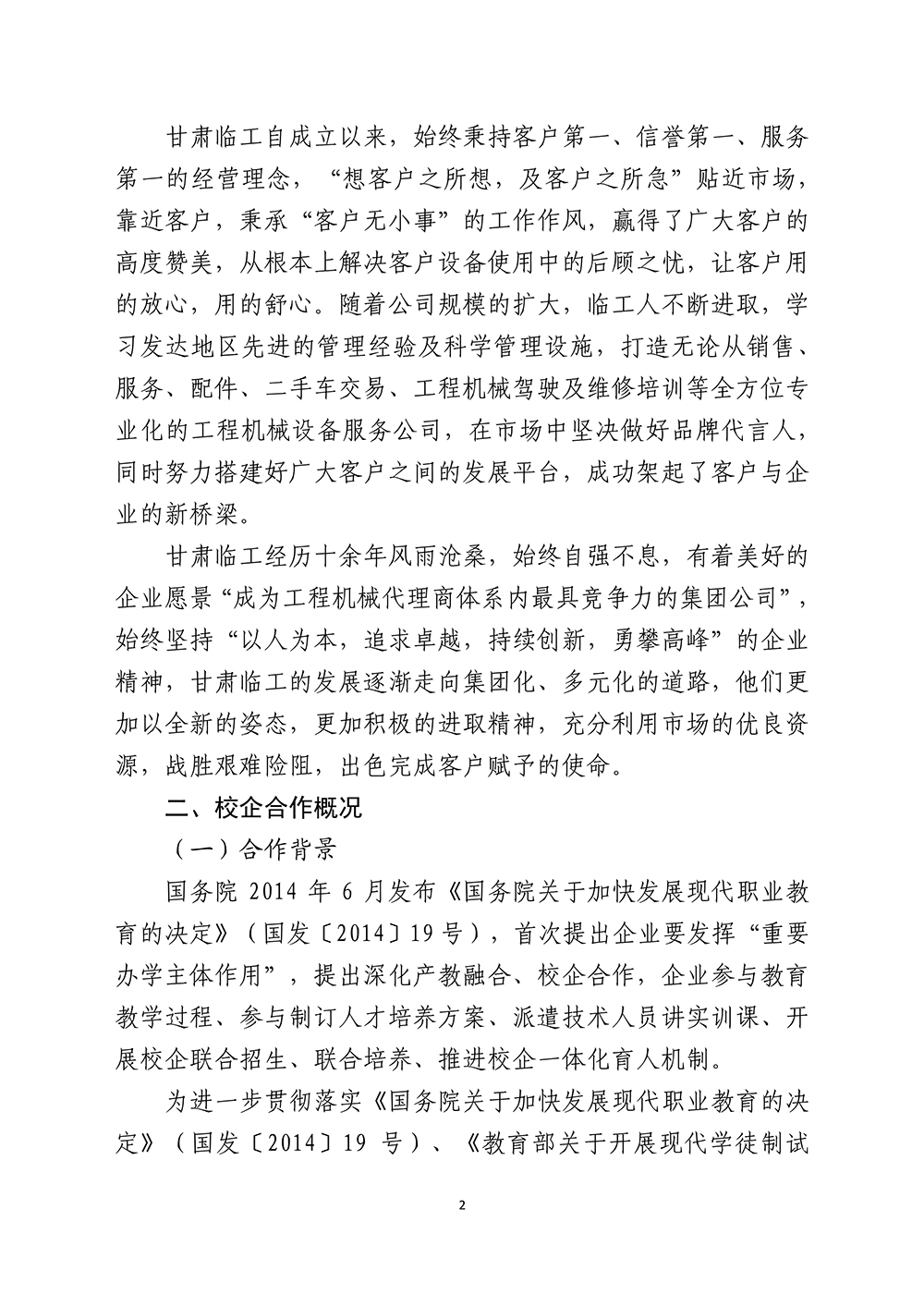 甘肃临工机械设备有限责任公司参与学校人才培养质量年度年报(2020)