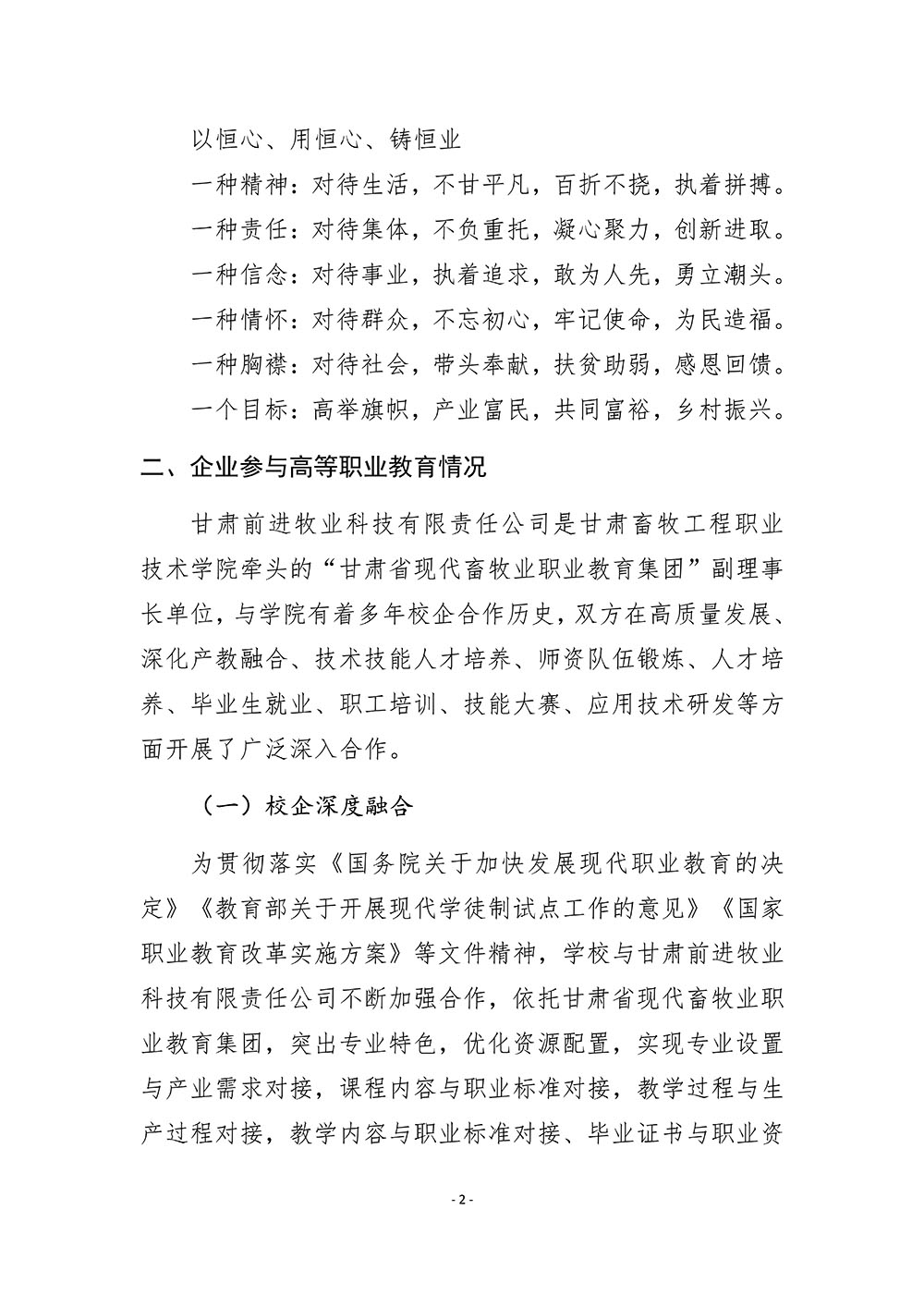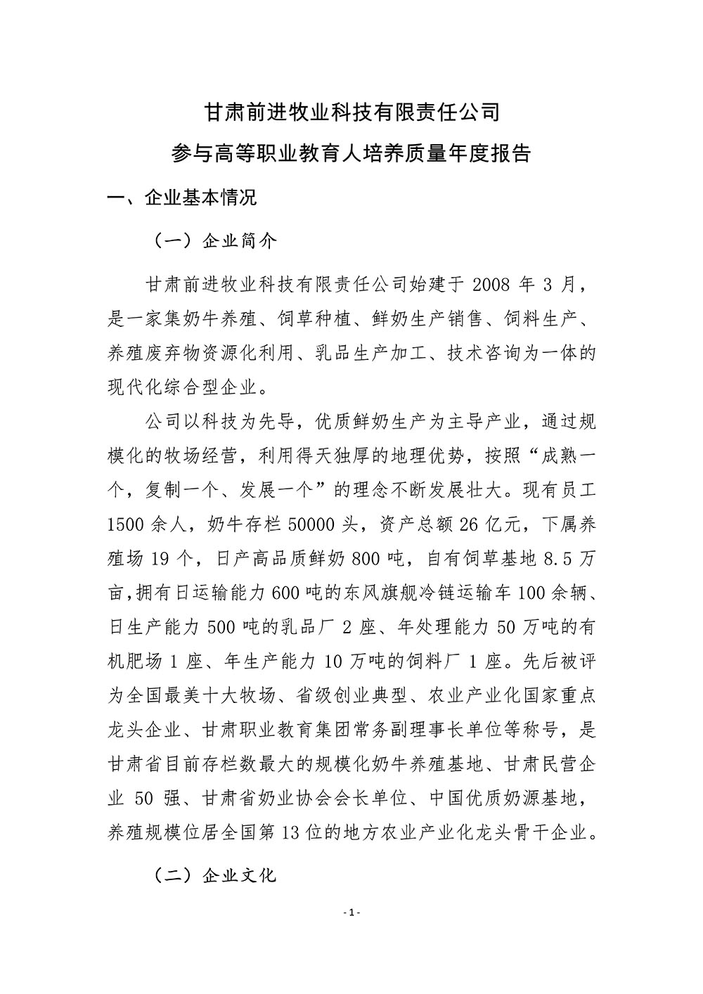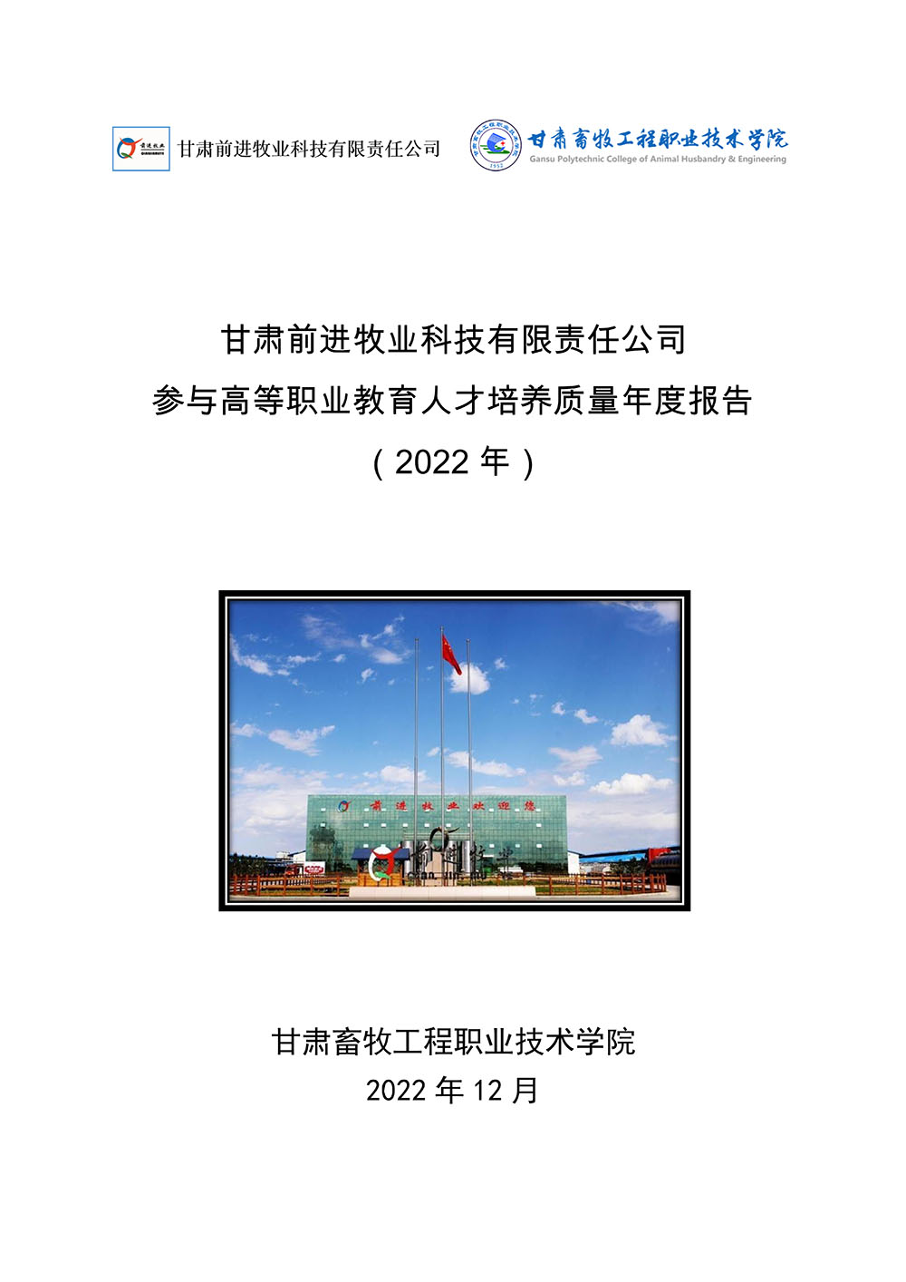 甘肃前进牧业科技有限责任公司参与高等职业教育人才培养质量年度报告(2022) 发布时间:2023-01-05 15:54:00 浏览次数:次 【字体:小 大】 终审:宣传部 分享到: 【打印正文】 相关信息