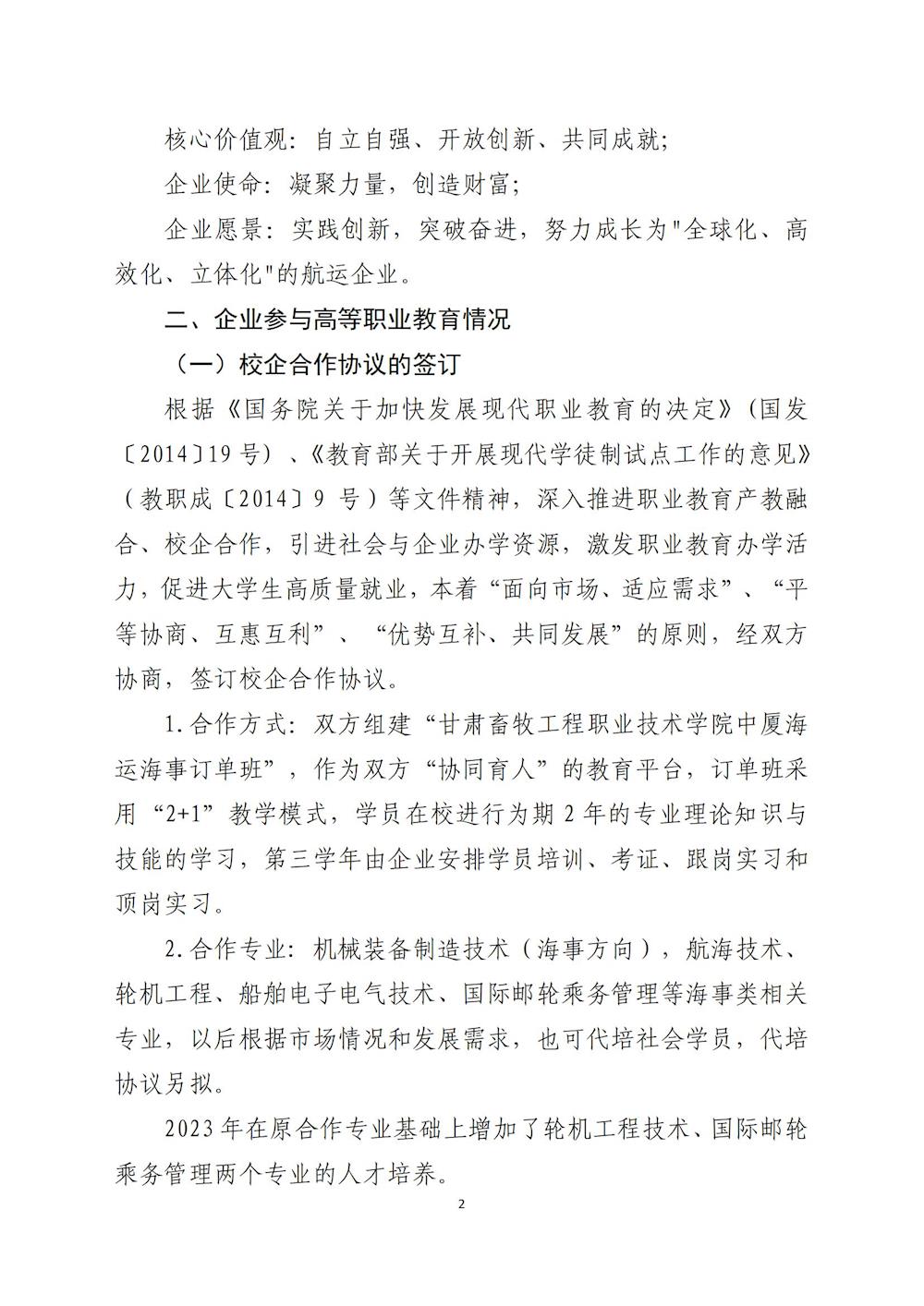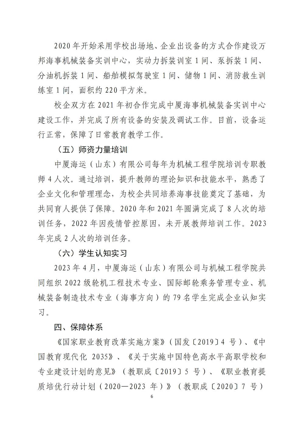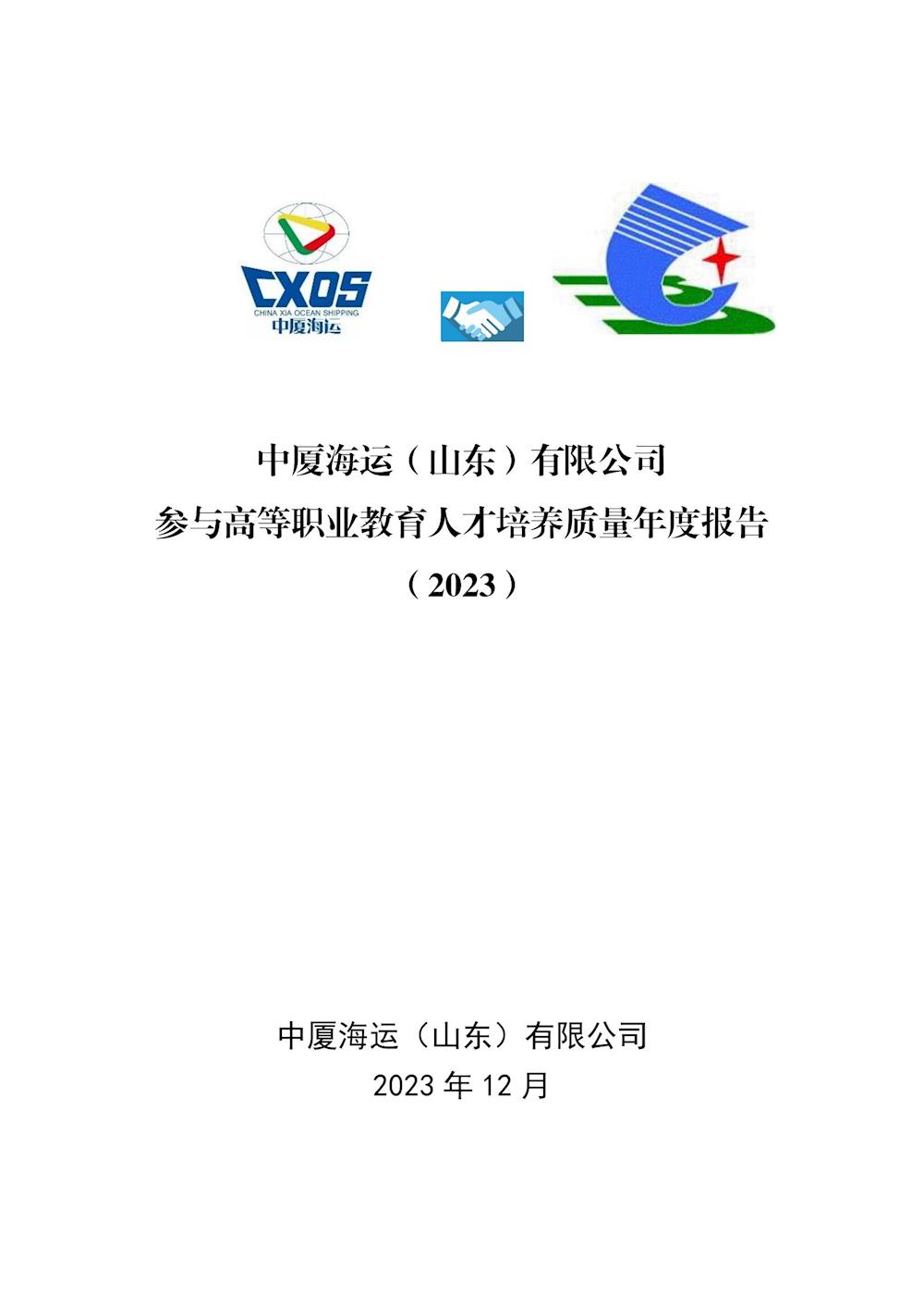 中厦海运(山东)有限公司参与高等职业教育人才培养质量年度报告(2023) 发布时间:2024-01-12 18:05:00 浏览次数:次 【字体:小 大】 终审:宣传部 分享到: 【打印正文】 相关信息