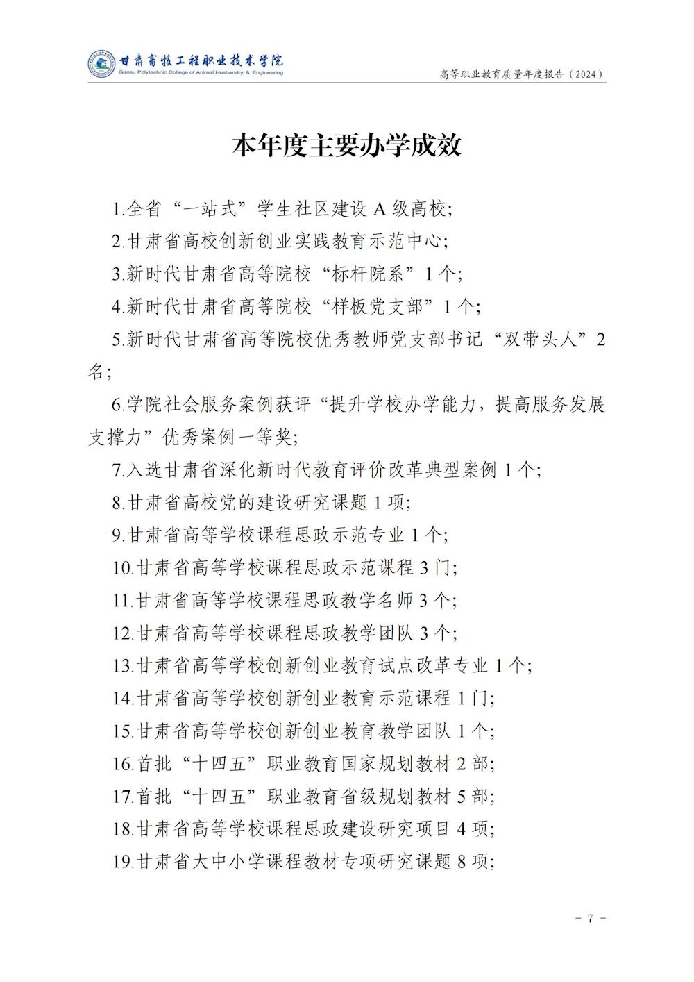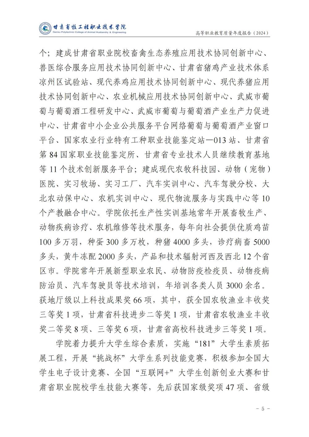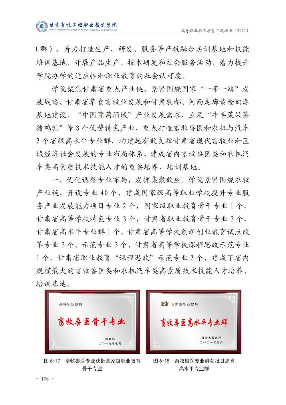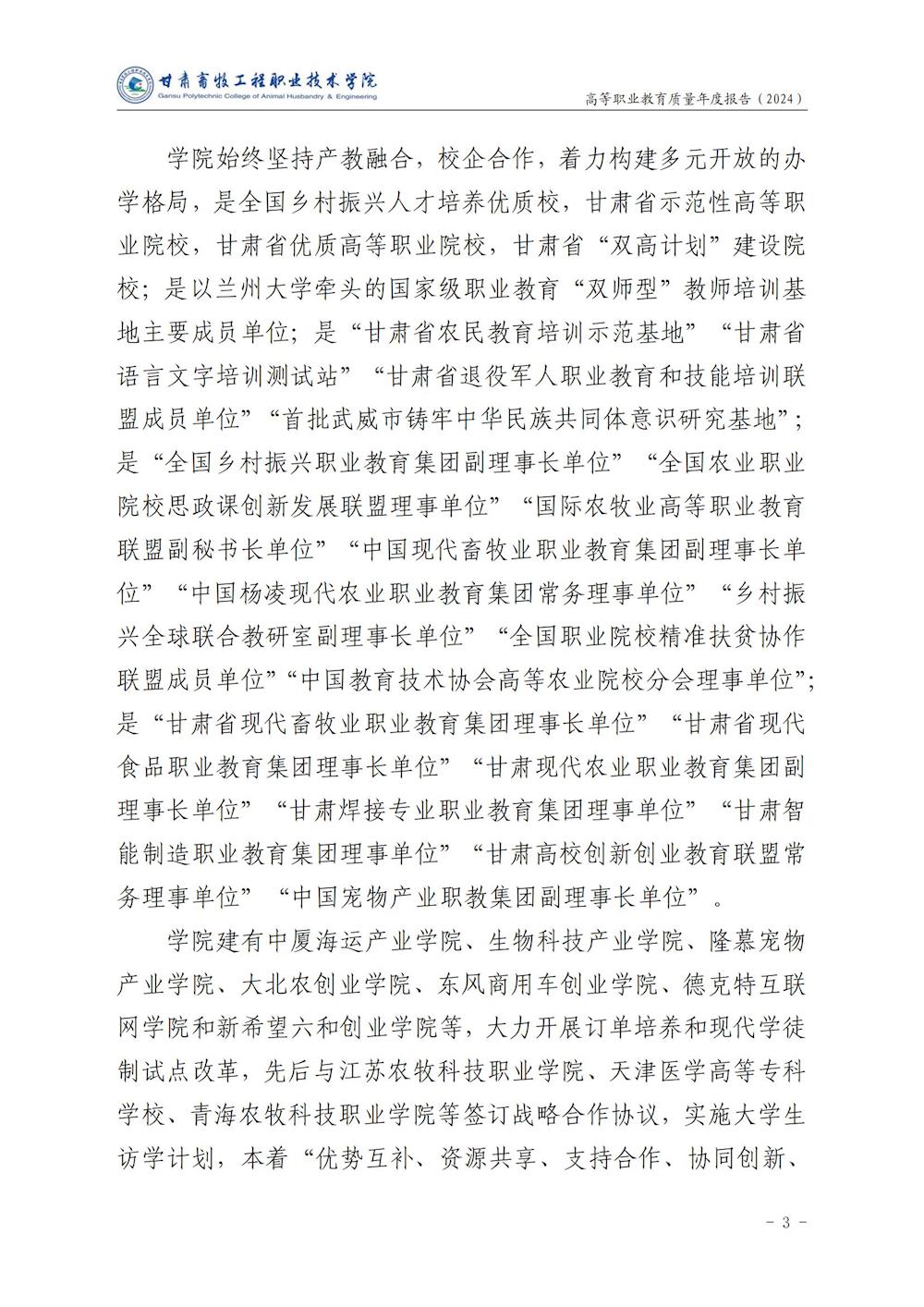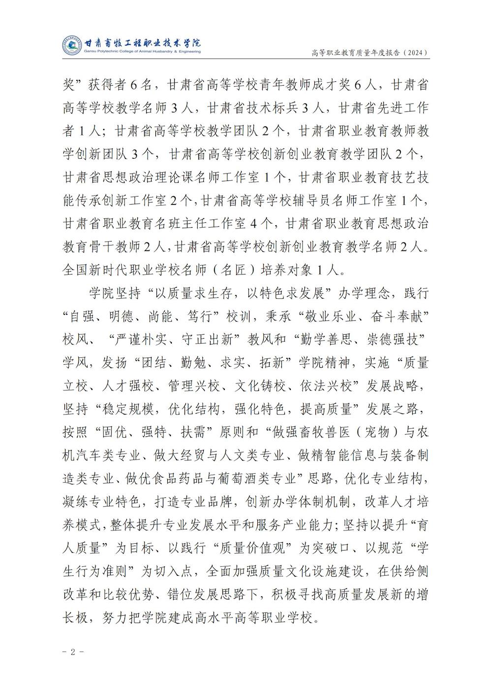 甘肃畜牧工程职业技术学院高等职业教育质量年度报告(2024)