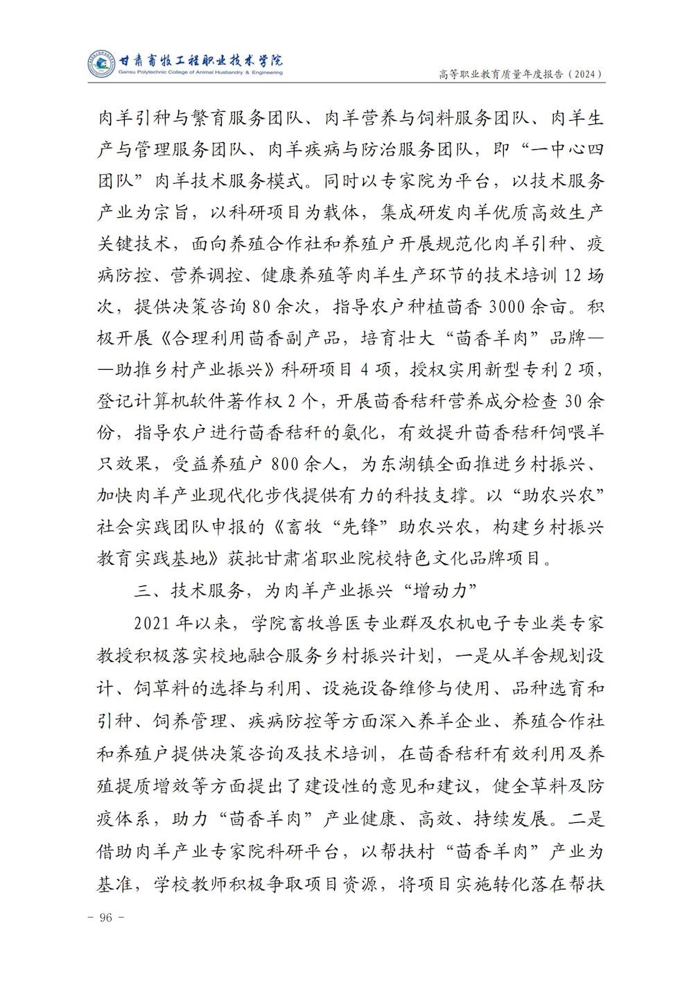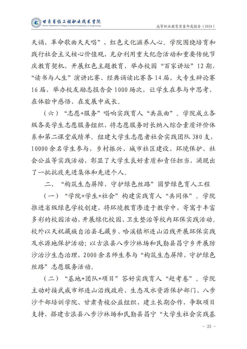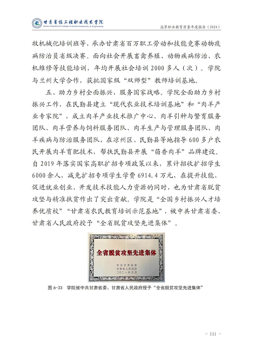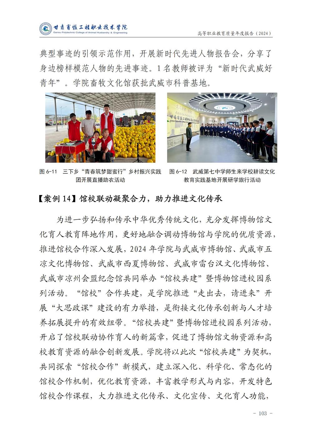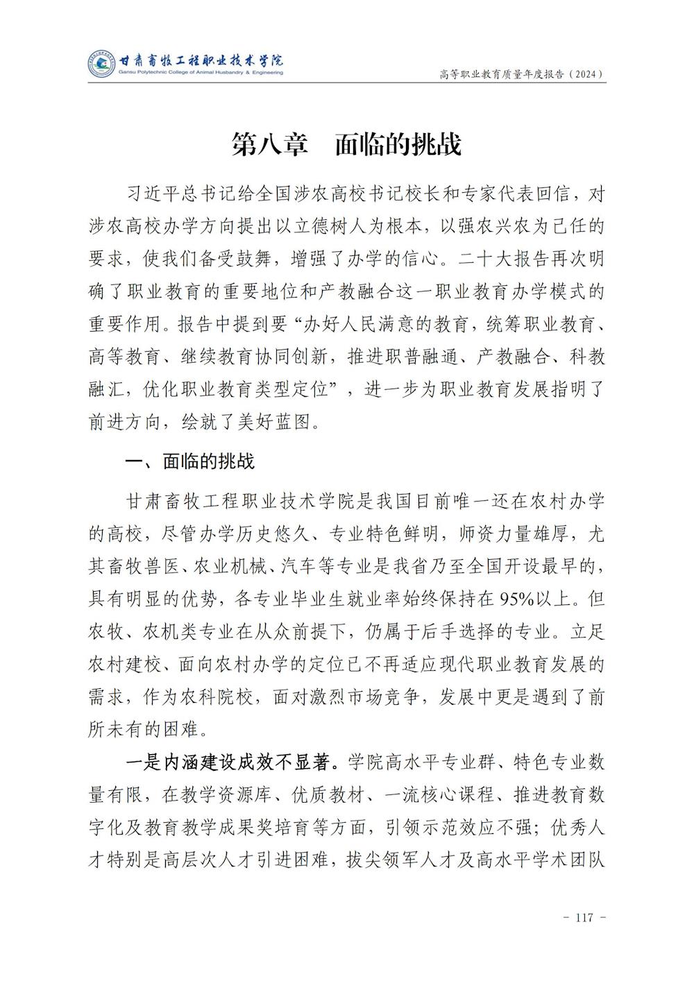 甘肃畜牧工程职业技术学院高等职业教育质量年度报告(2024)
