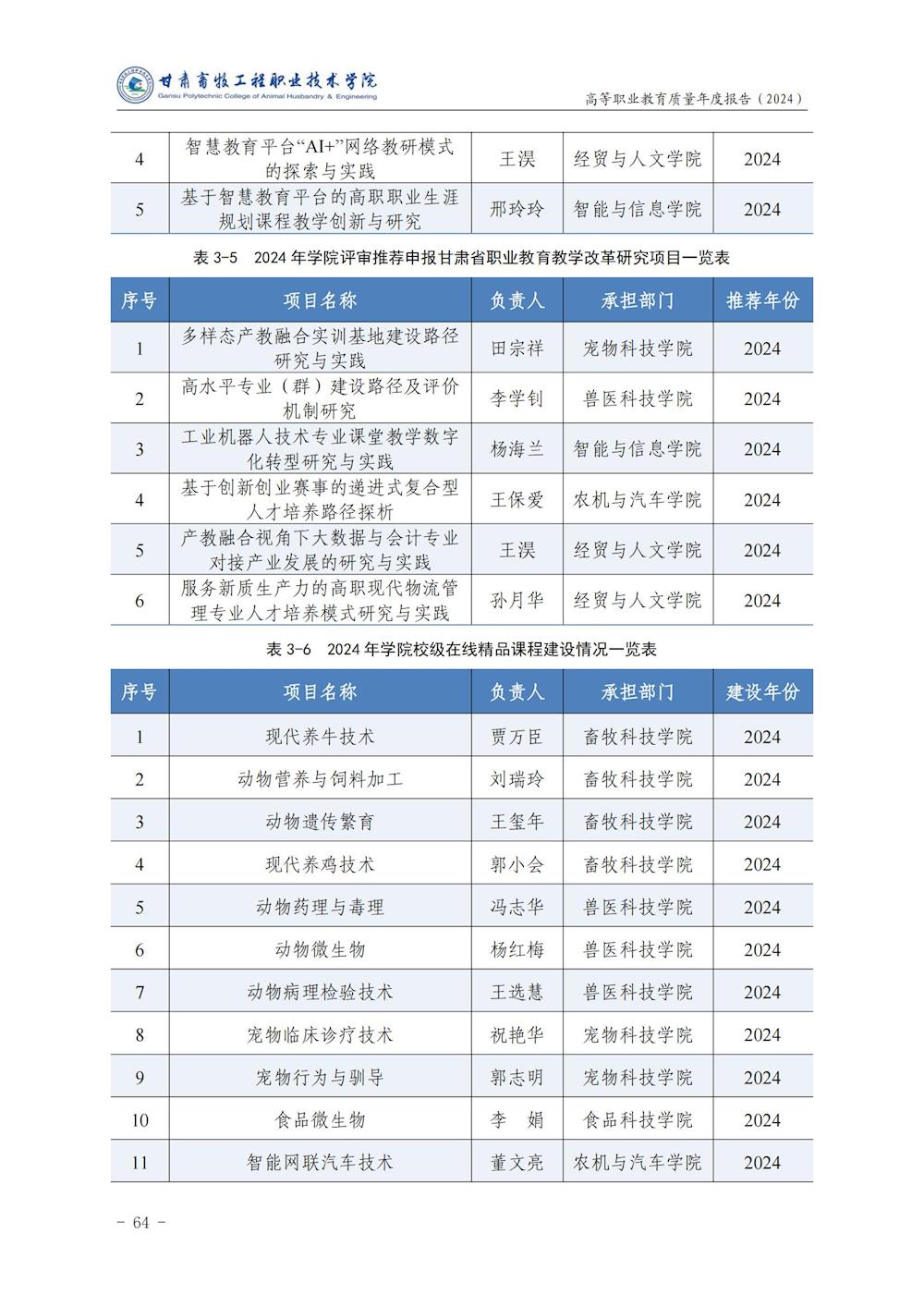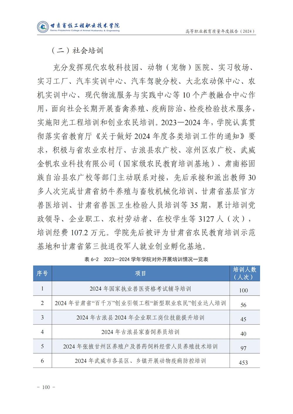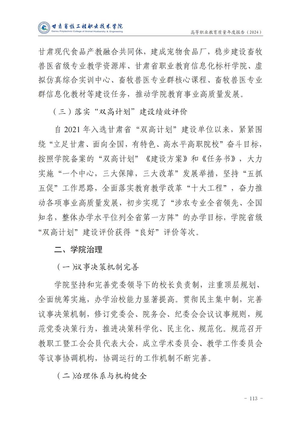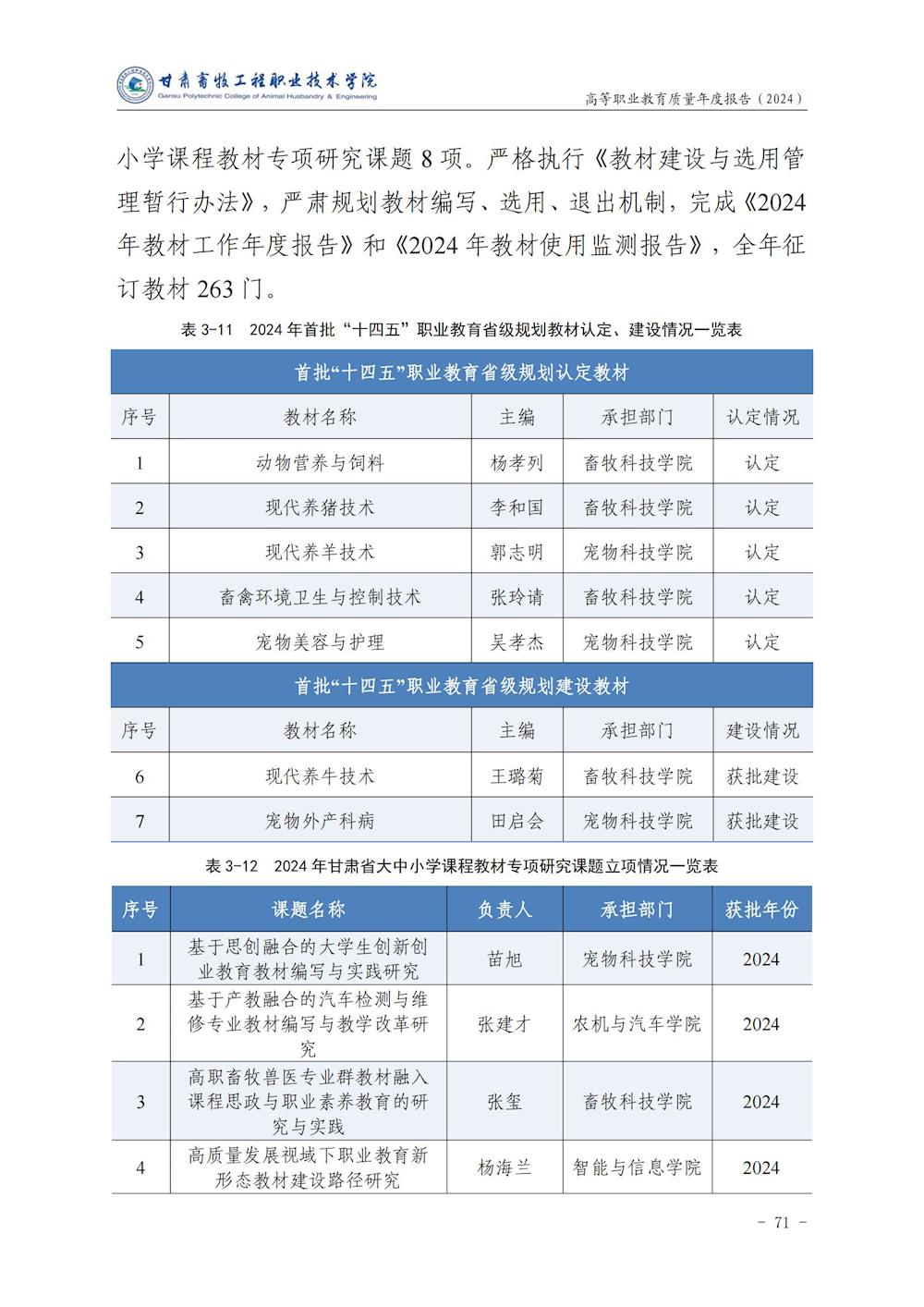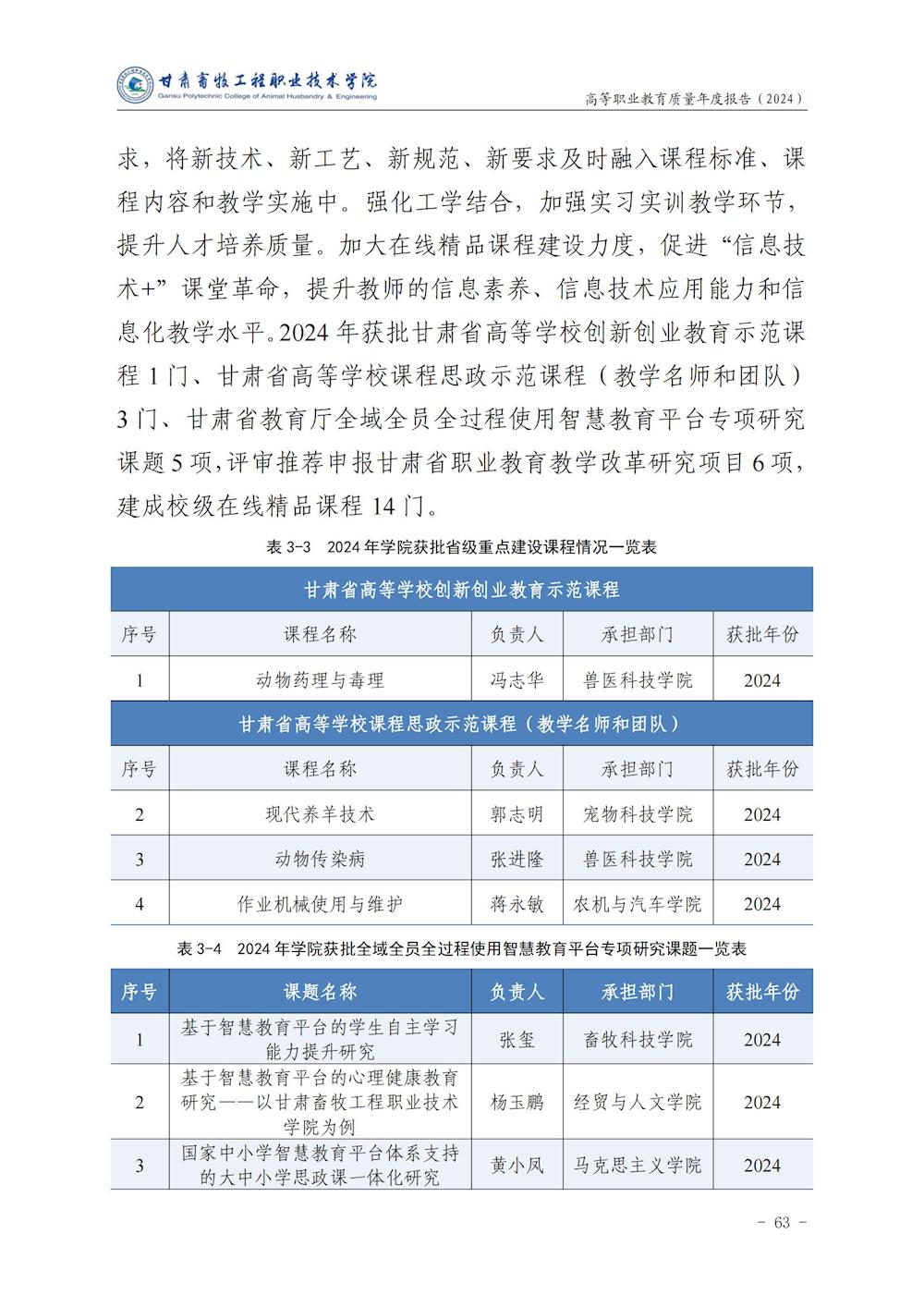 甘肃畜牧工程职业技术学院高等职业教育质量年度报告(2024)