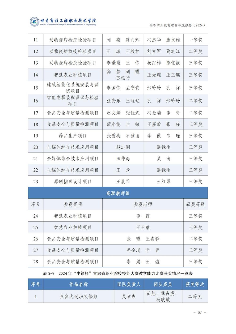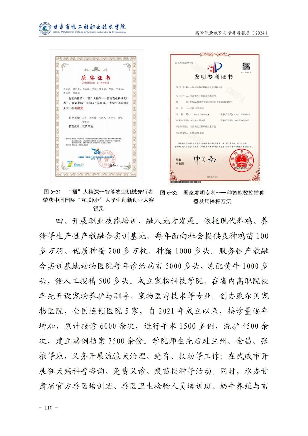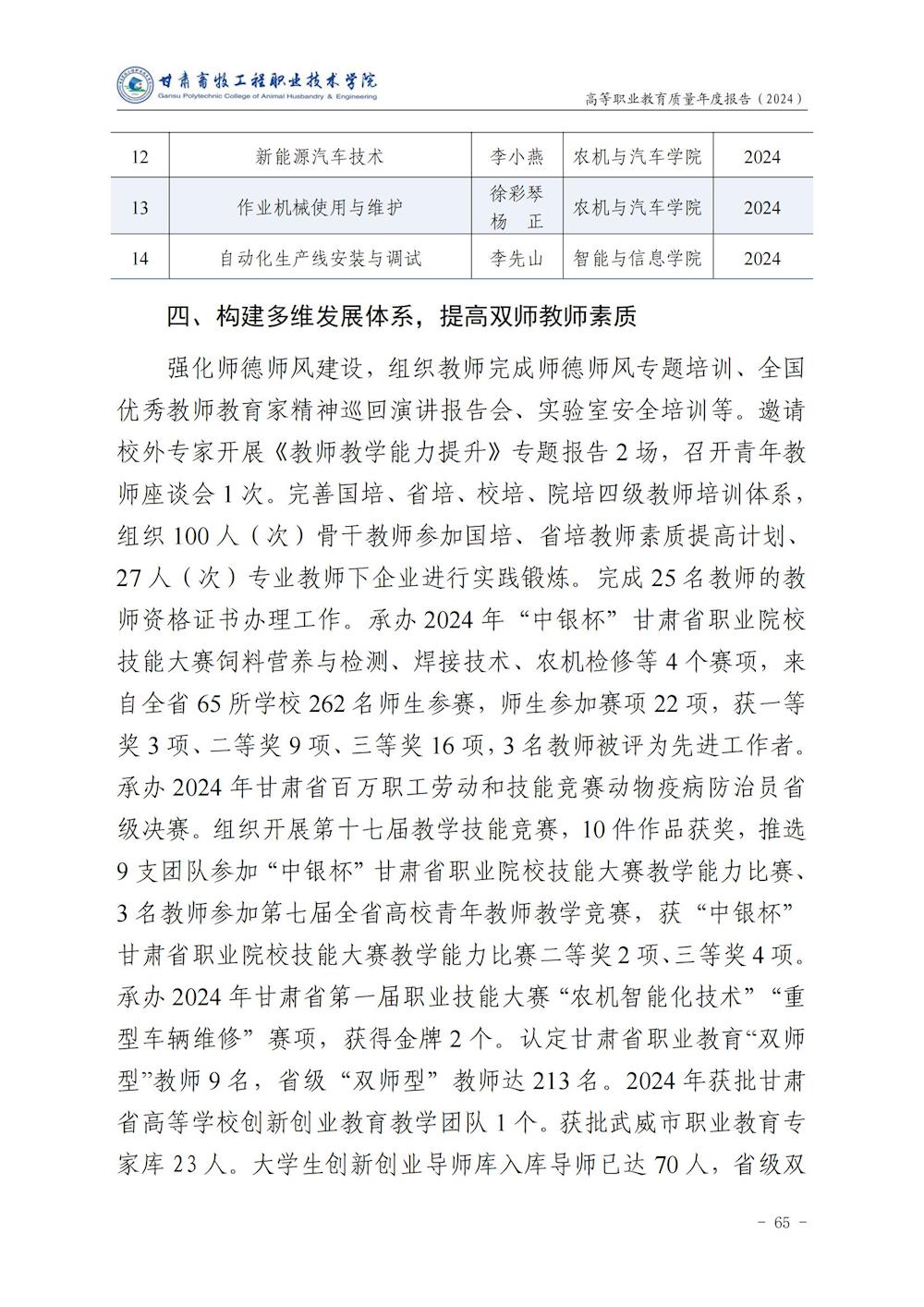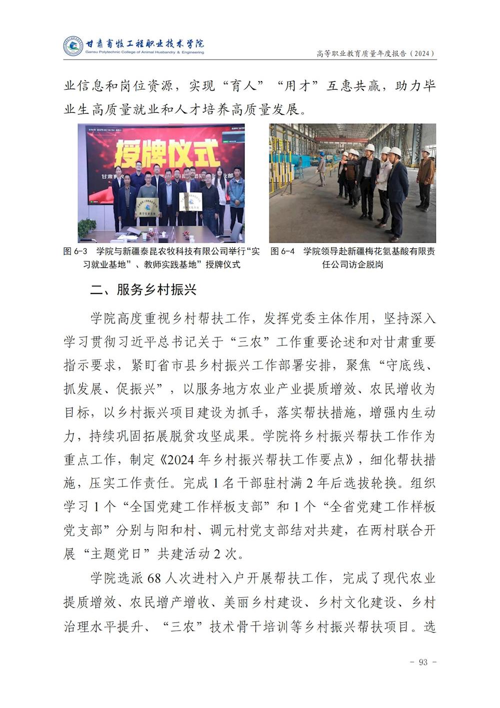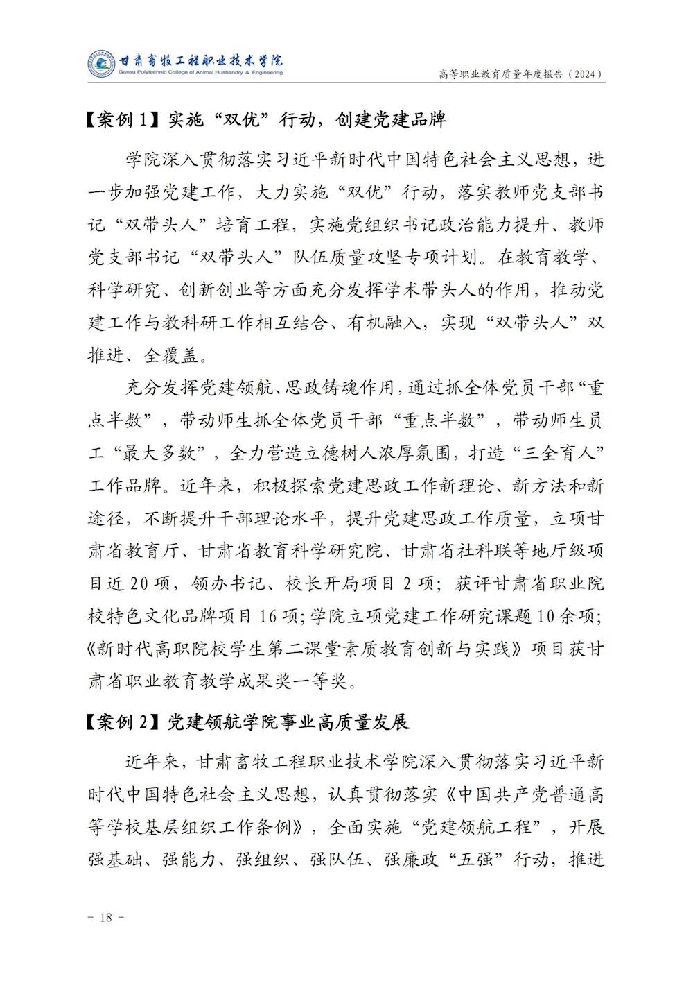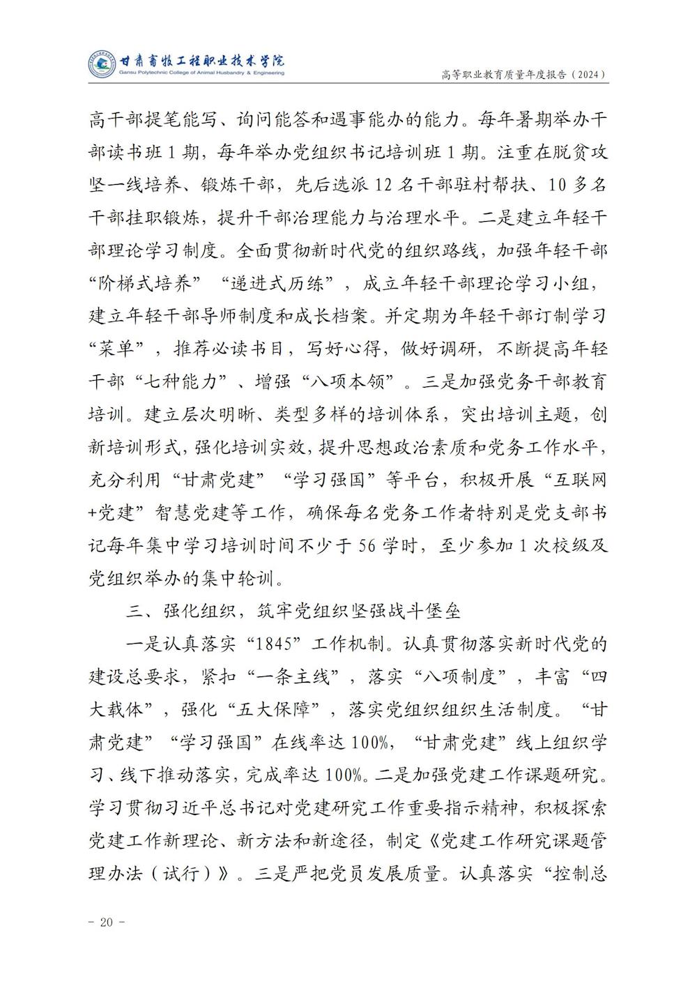 甘肃畜牧工程职业技术学院高等职业教育质量年度报告(2024)