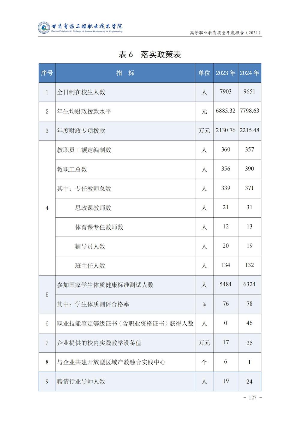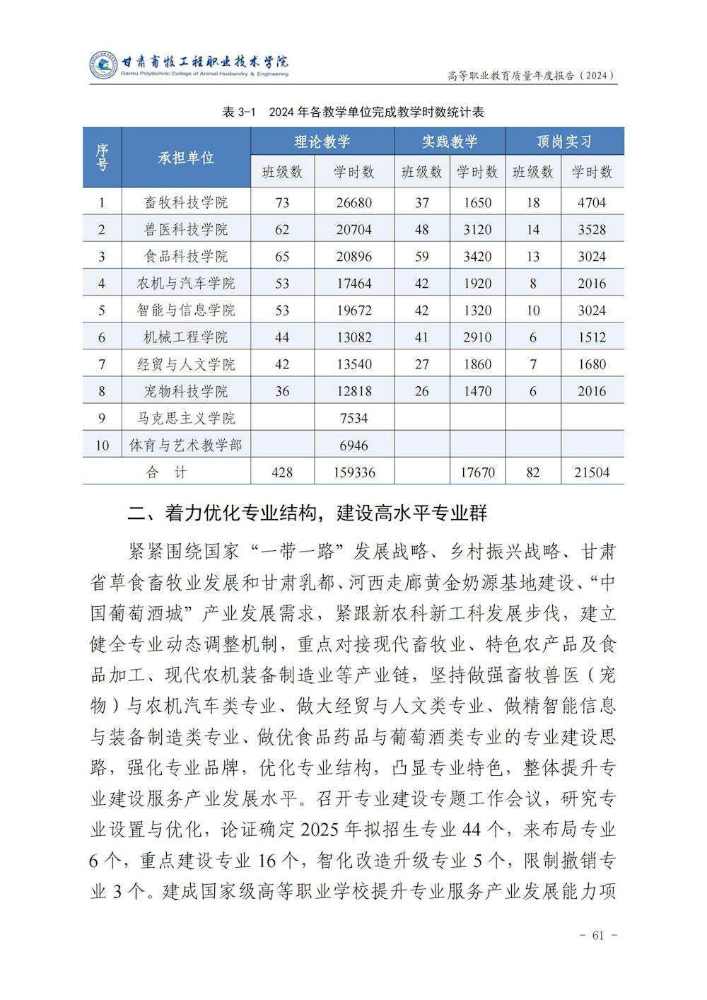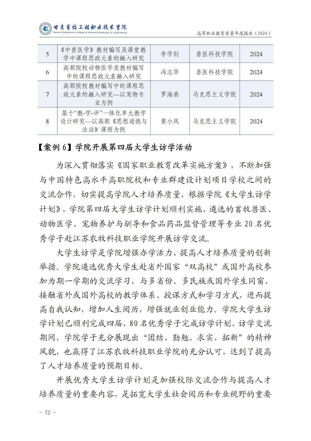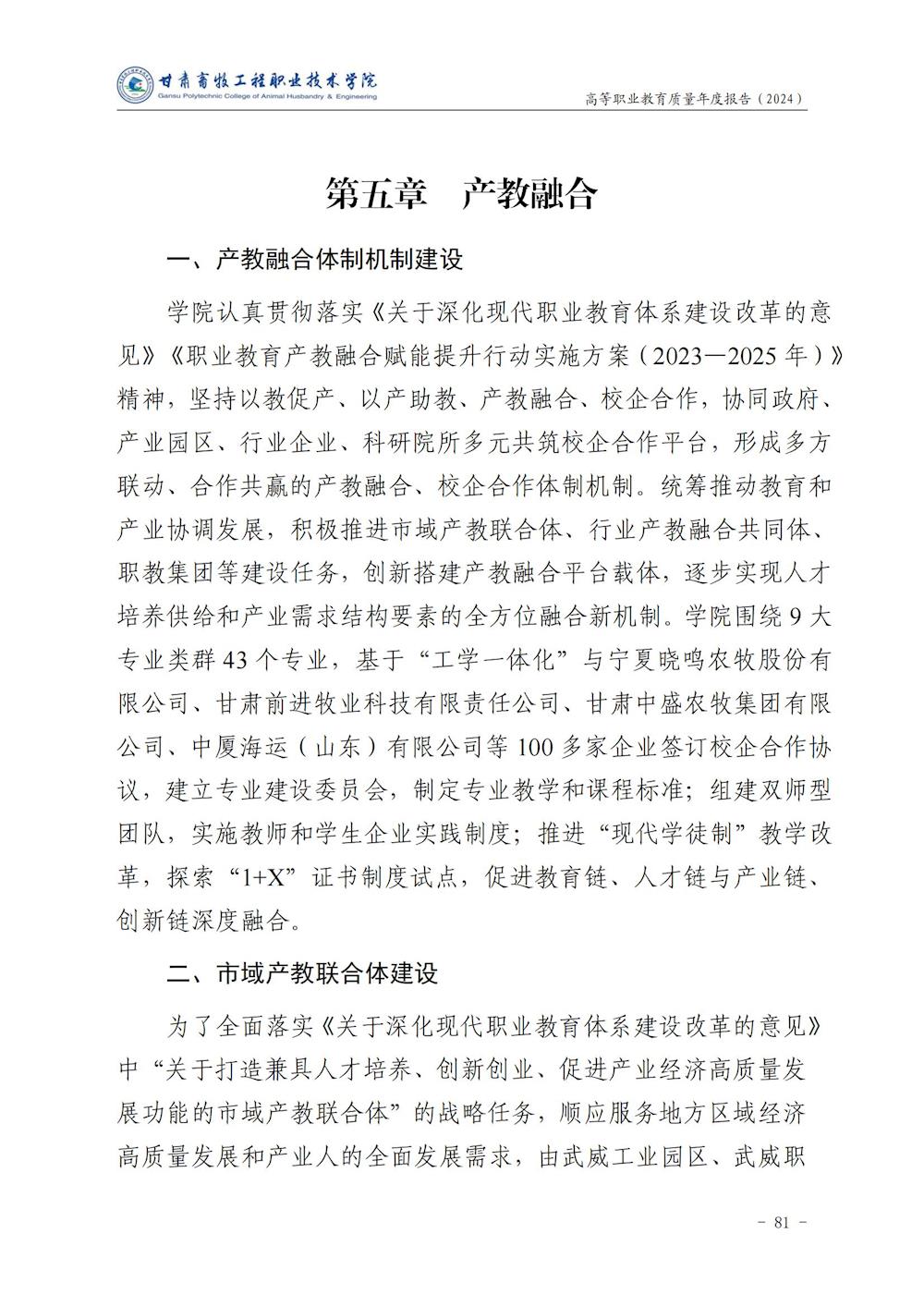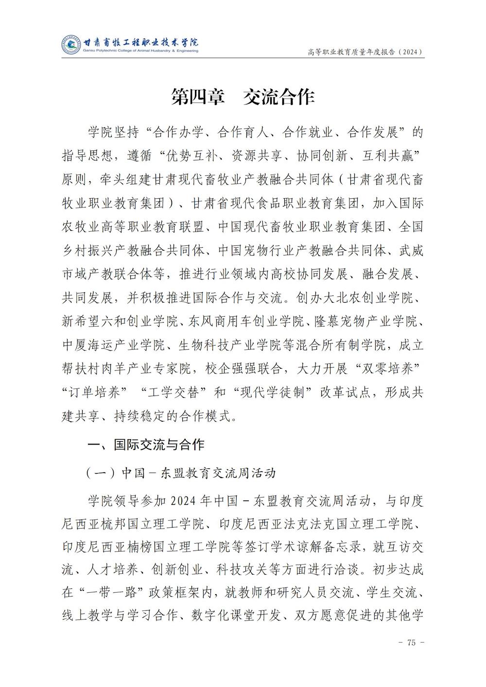 甘肃畜牧工程职业技术学院高等职业教育质量年度报告(2024)