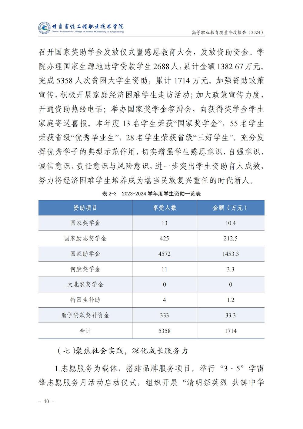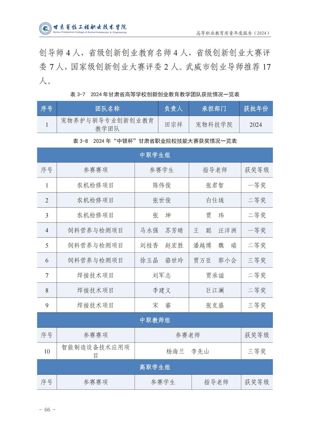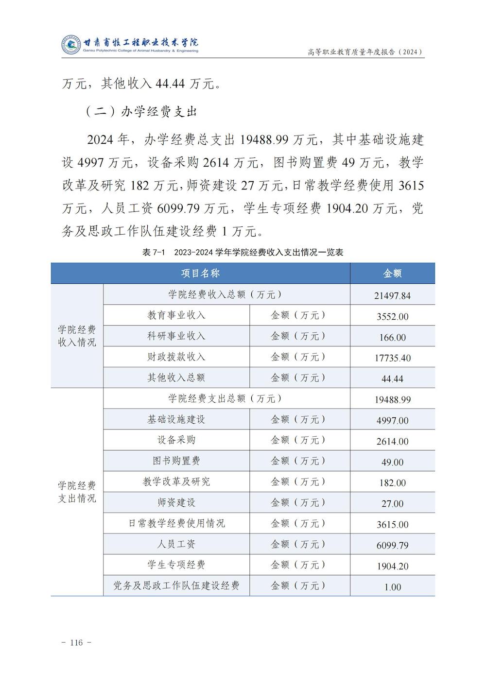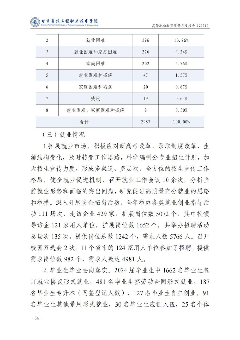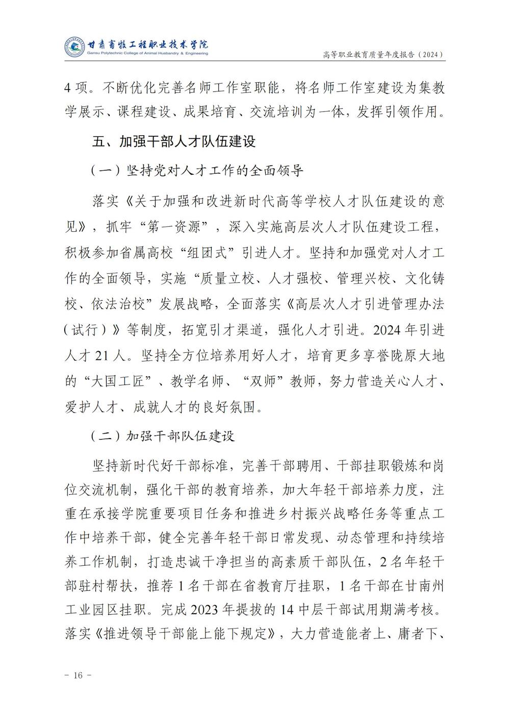 甘肃畜牧工程职业技术学院高等职业教育质量年度报告(2024)