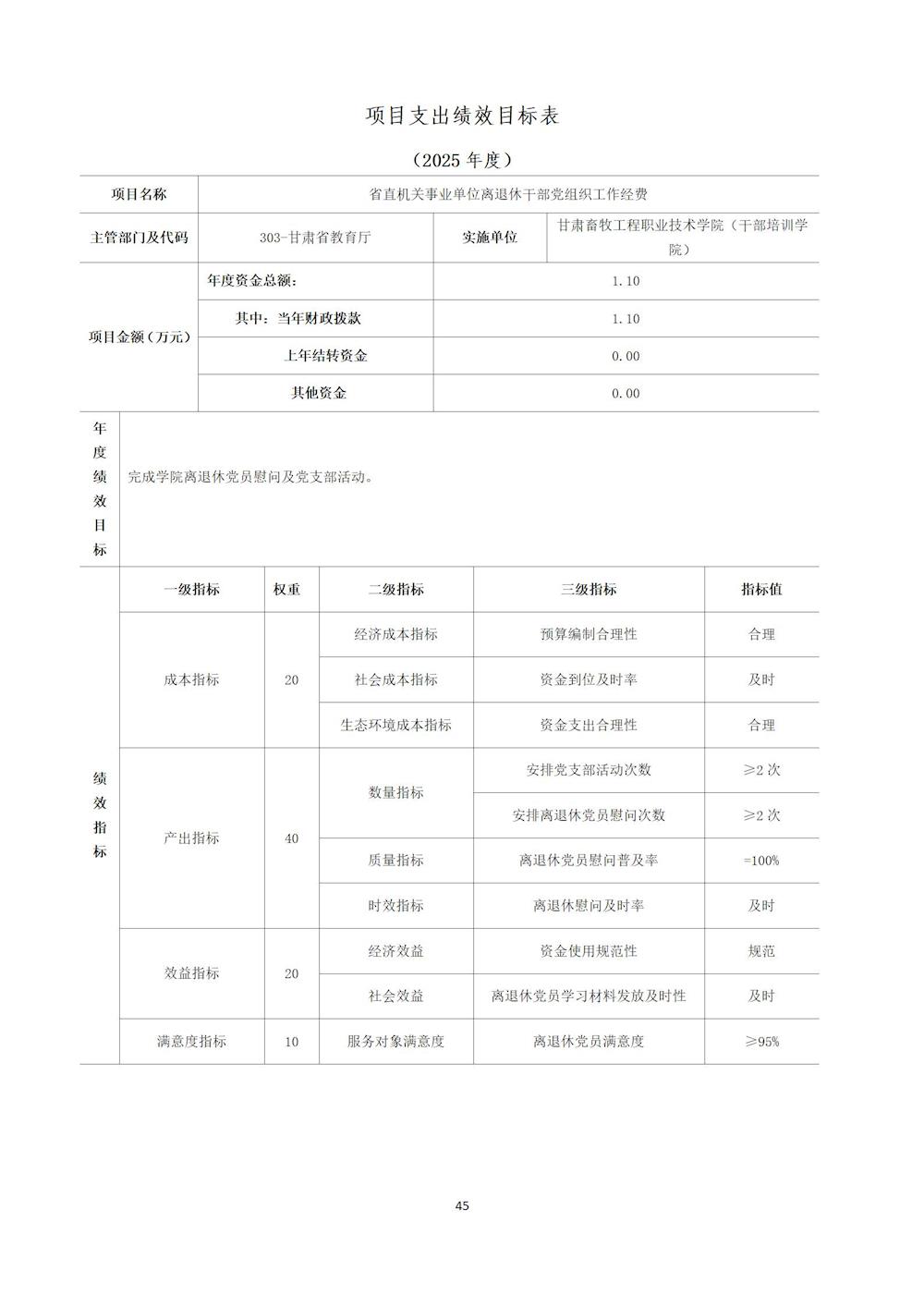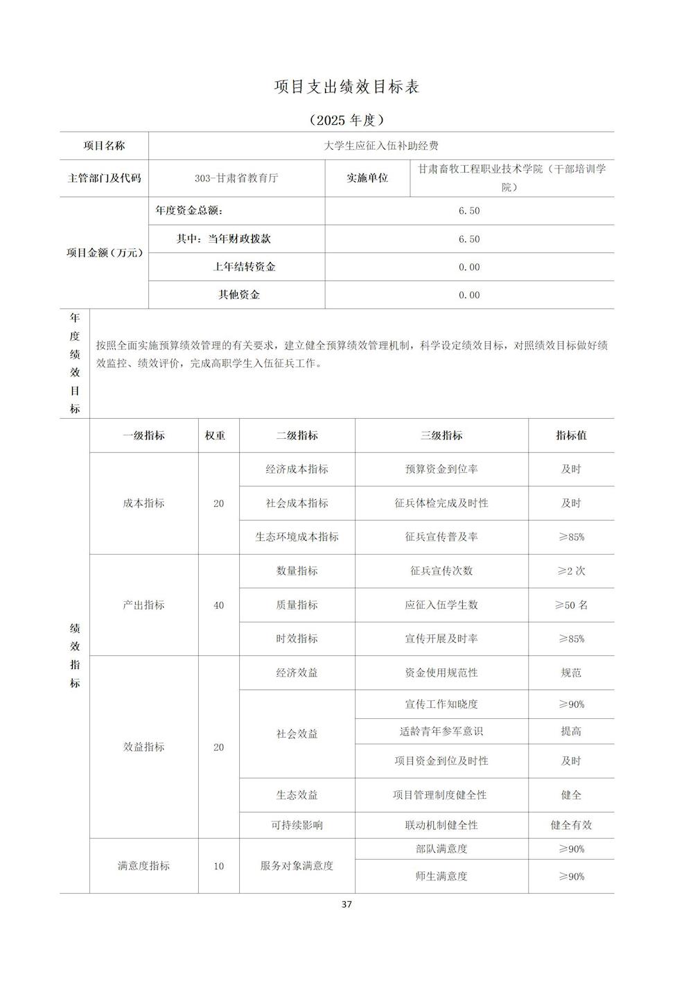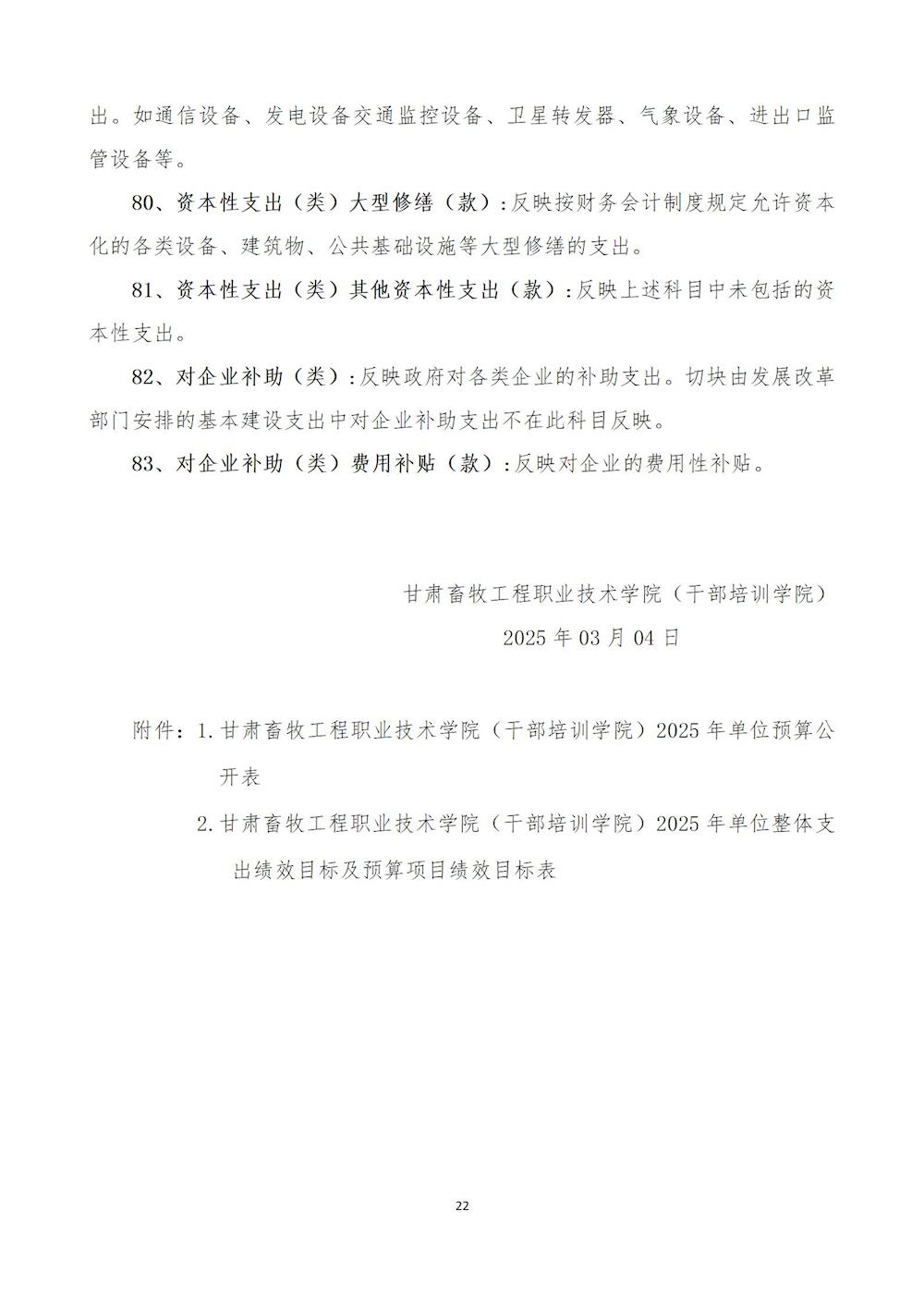 甘肃畜牧工程职业技术学院(干部培训学院) 2025年单位预算公开情况说明 发布时间:2025-03-04 08:30:00 浏览次数:次 【字体:小 大】 终审:宣传部 系统设置 分享到: 【打印正文】 相关信息