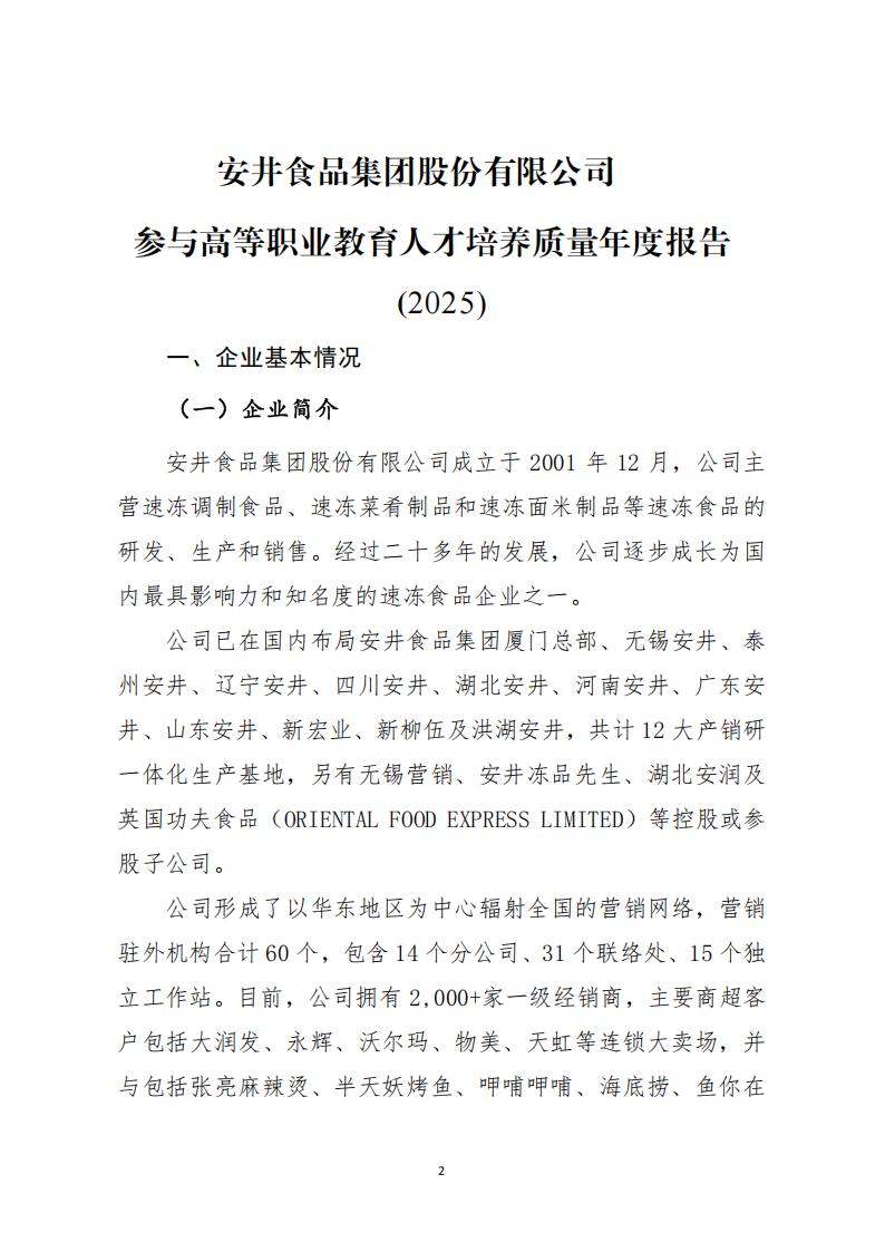 安井食品集团有限公司参与高等职业教育人才培养质量年度报告(2025)