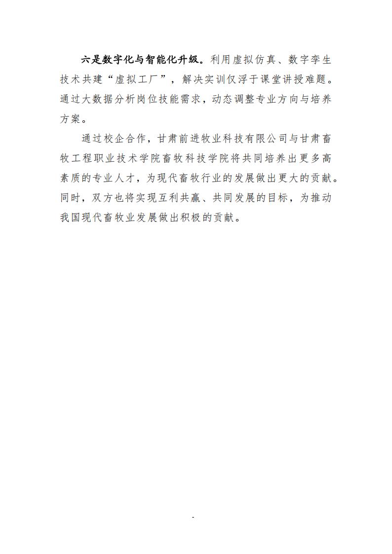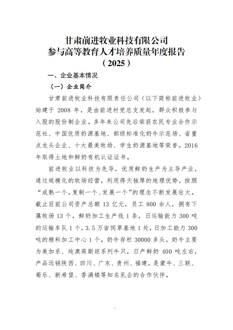 甘肃前进牧业科技有限公司参与高等教育人才培养质量年度报告(2025) 发布时间:2026-01-09 15:36:00 浏览次数:次 【字体:小 大】 查看详情 终审:宣传部 分享到: 【打印正文】 相关信息