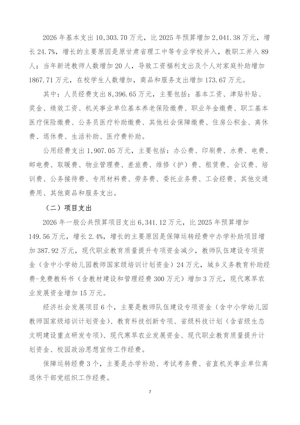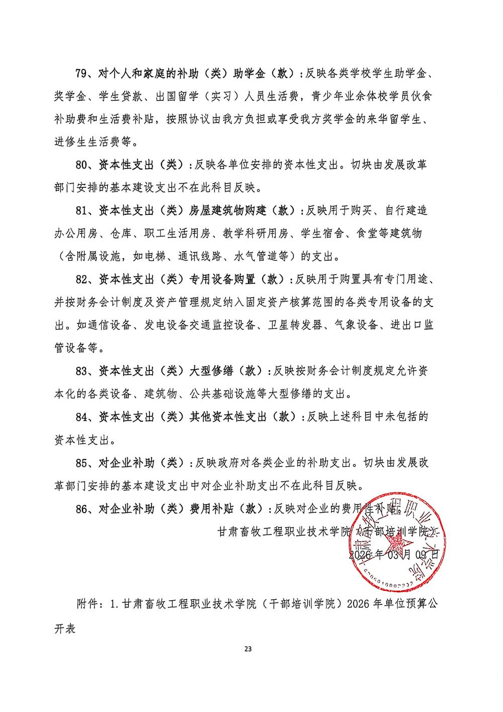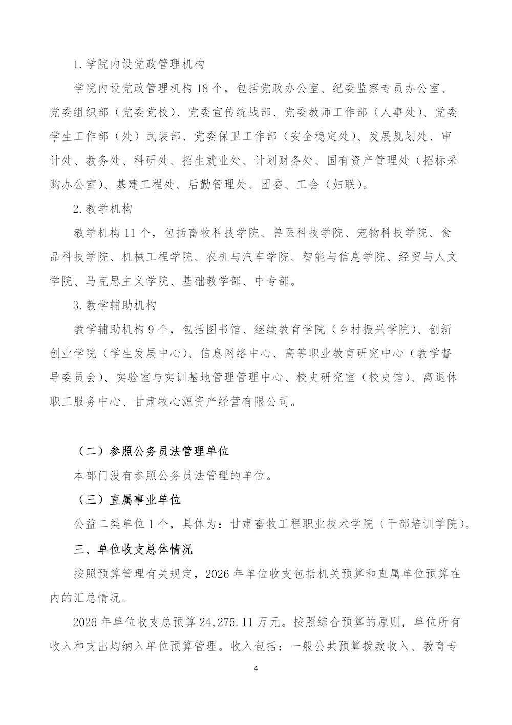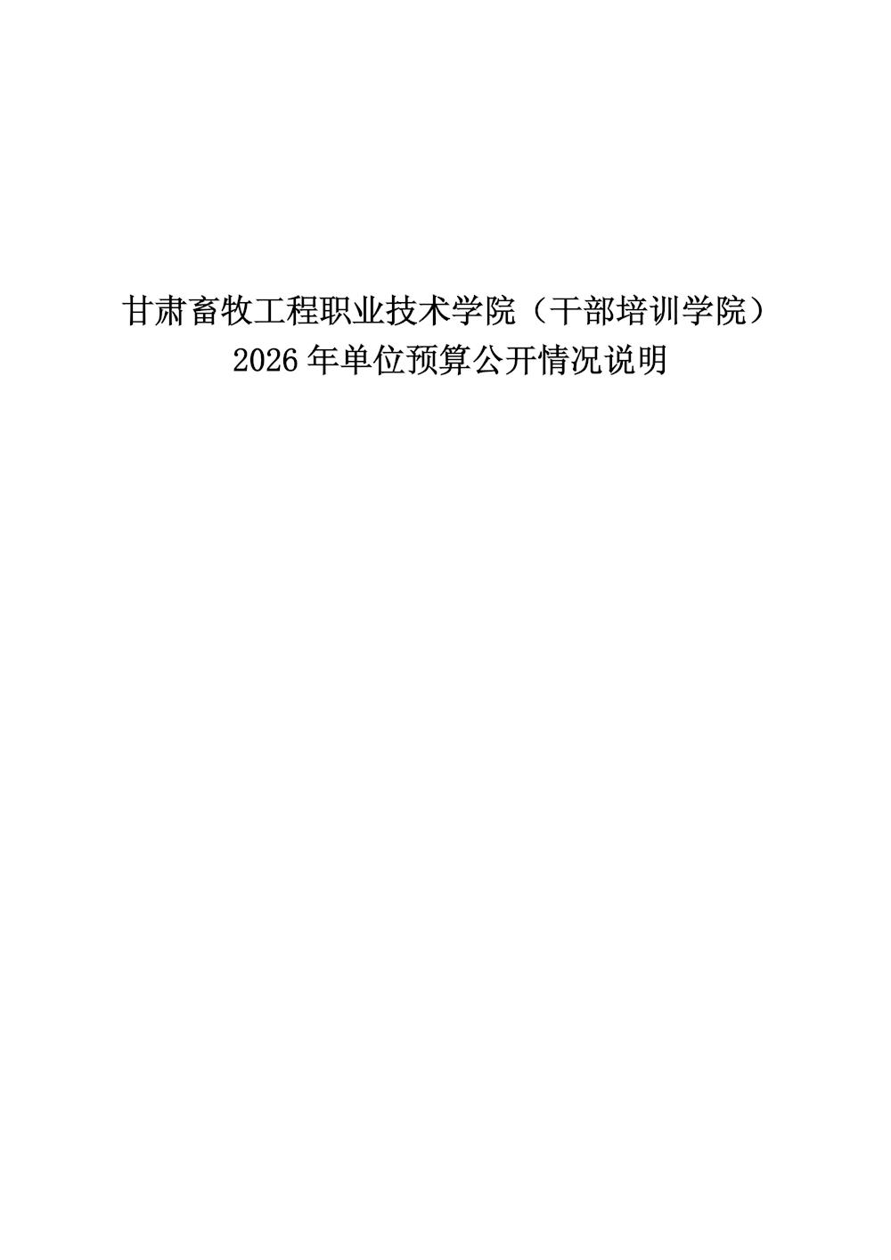 甘肃畜牧工程职业技术学院(干部培训学院)2026年单位预算公开情况说明
