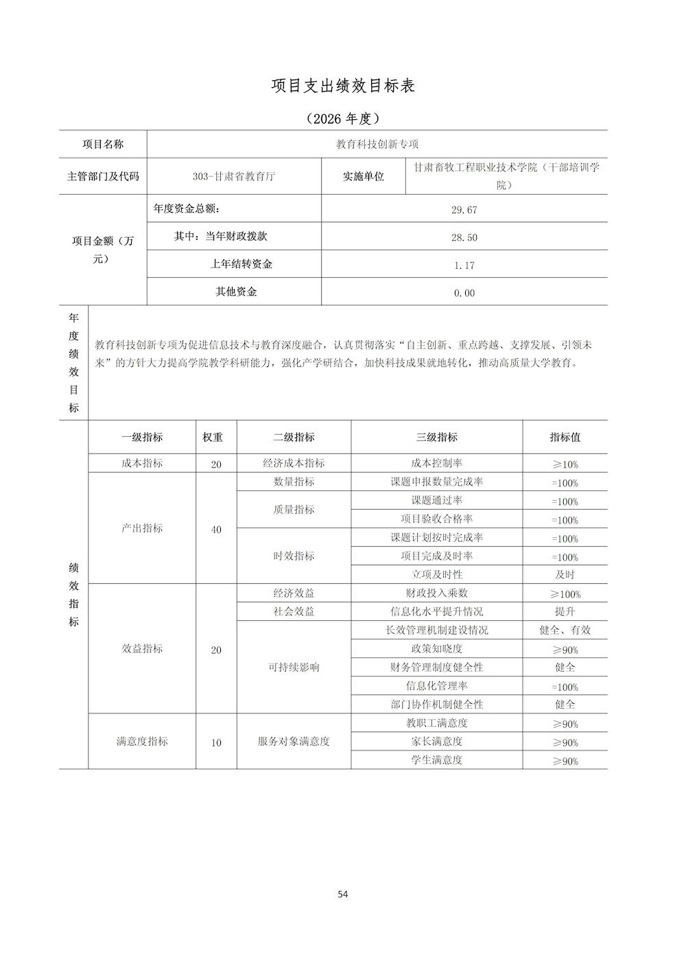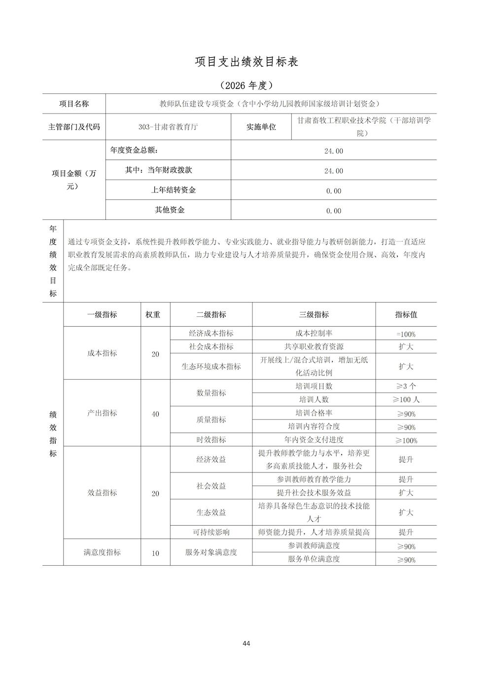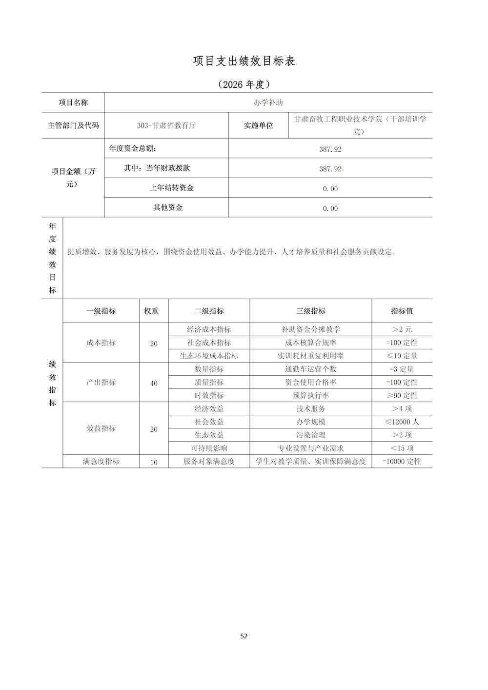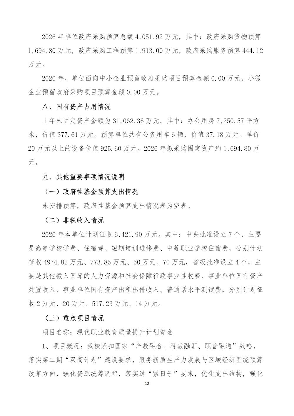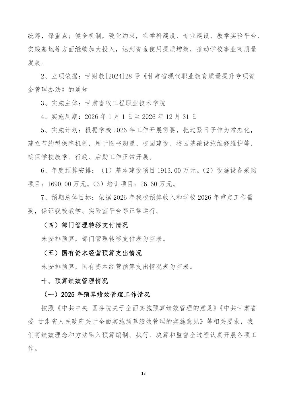 甘肃畜牧工程职业技术学院(干部培训学院)2026年单位预算公开情况说明