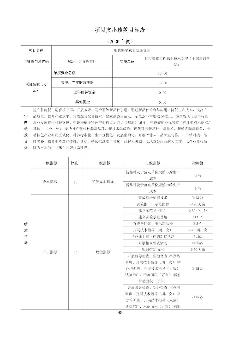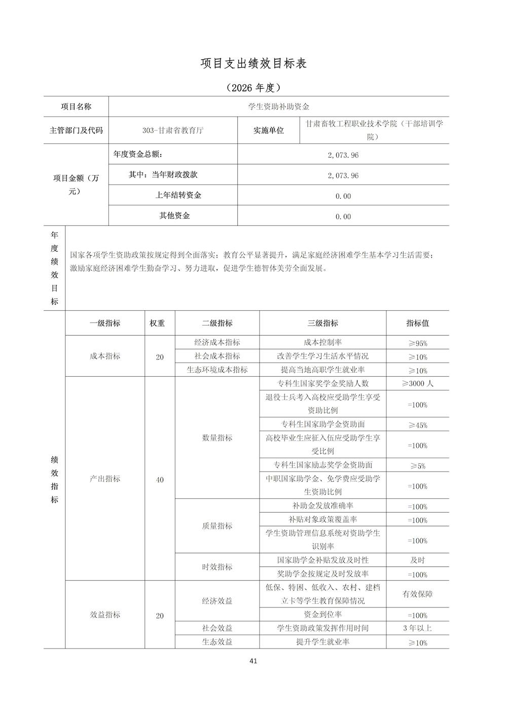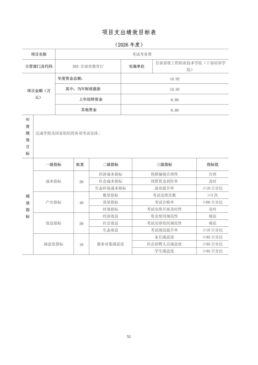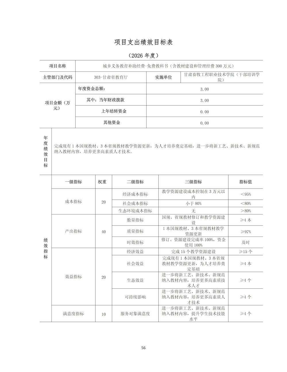 甘肃畜牧工程职业技术学院(干部培训学院)2026年单位预算公开情况说明