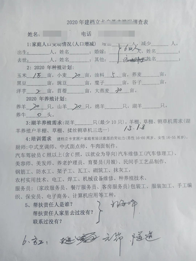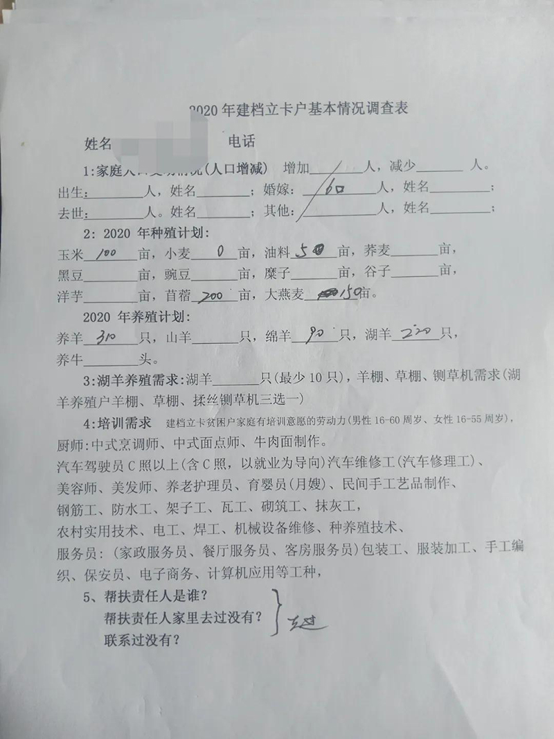 为按期保质保量完成相关工作,驻村工作队根据疫情防控形势,及时调整工作方式。指导村党支部和村委利用微信、钉钉等软件举行视频会议,通过电话、微信等方式调查完成“六查三讲一提升”资料的收集整理。期间驻村队员克服语言障碍、电话不通、电话空号、电话不接等问题,利用一周的时间,一遍又一遍联系村民,详细耐心询问生产生活情况、解答问题、纾解困难。在一周时间内每个队员和村民的通话时间都累计超过了500分钟。看着那一叠叠厚厚的访谈资料和纸上密密麻麻访谈信息,驻村工作队总队长巨江澜感叹道:“我们不容易,农民更不容易啊!”