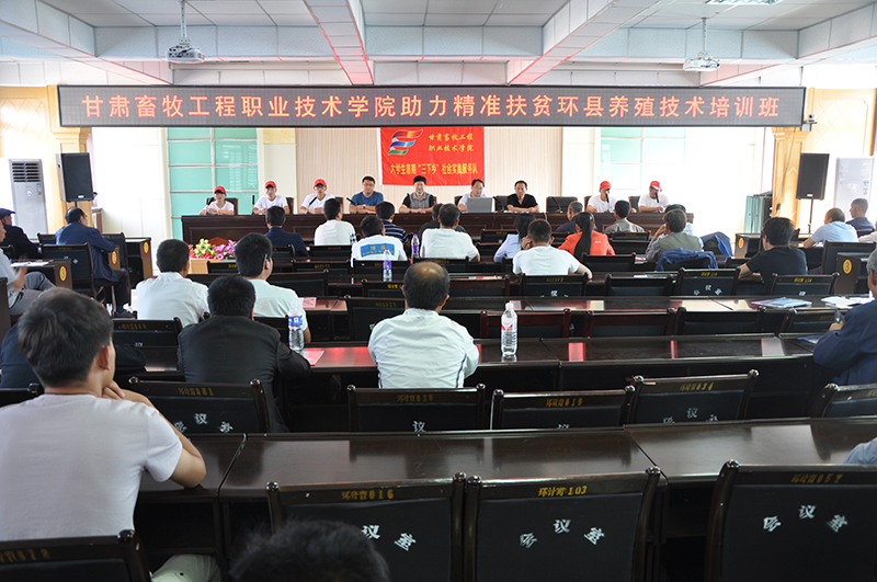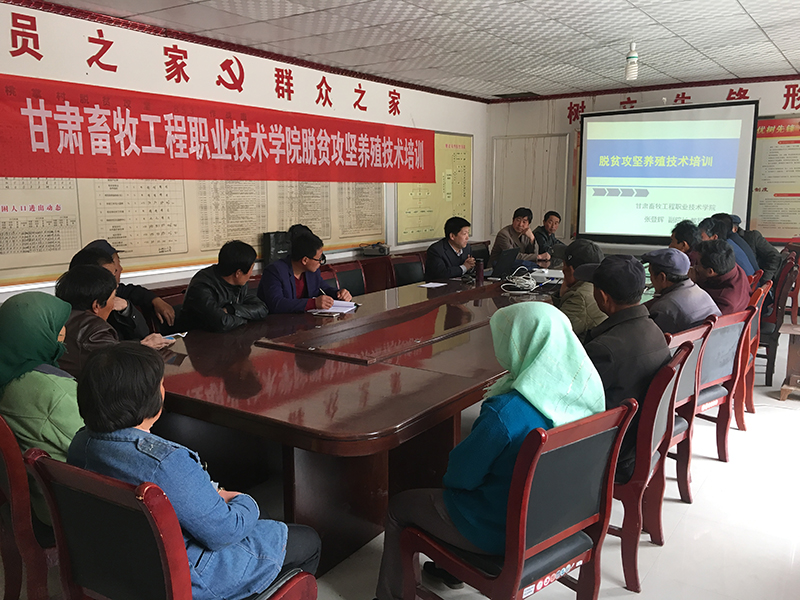 不断拓宽致富增收渠道,让贫困群众脱贫 “有术”。学校充分发挥人才优势,主动出击,强力推进,面向全省组织开展各种类型农业农村产业农民实用技术培训,提高养殖户的技术技能水平,增强脱贫致富奔小康内生动力,有效提高贫困群众收入。先后在校内承办瓜州县沙河回族乡精准扶贫家畜饲养员培训班、永登县通远镇异地搬迁安置点农业实用技术培训班、宕昌县贫困村创业致富带头人能力提升培训班、榆中县高素质农民培育(农机)产业扶贫带头人能力提升培训班、定西市乡村畜牧兽医人员技能提升培训班、甘肃省扶贫产业(牛)骨干人员技能提升培训班等培训班,在校外通过实施技术技能培训、入场巡回指导、送科技下乡等举措,累计培训学员8500余人次,走访专业合作社70余家,发放《养羊关键技术》《养牛关键技术》等实用技术手册6000余册。发挥学校实训基地作用,积极开展阳光工程培训和创业型农民培训,长期提供畜禽养殖、疫病防治、检疫检验技术服务,生产性实训基地常年为社会提供种畜和鲜奶、鲜蛋,动物医院每年诊治患病牲畜3000余头(只)。