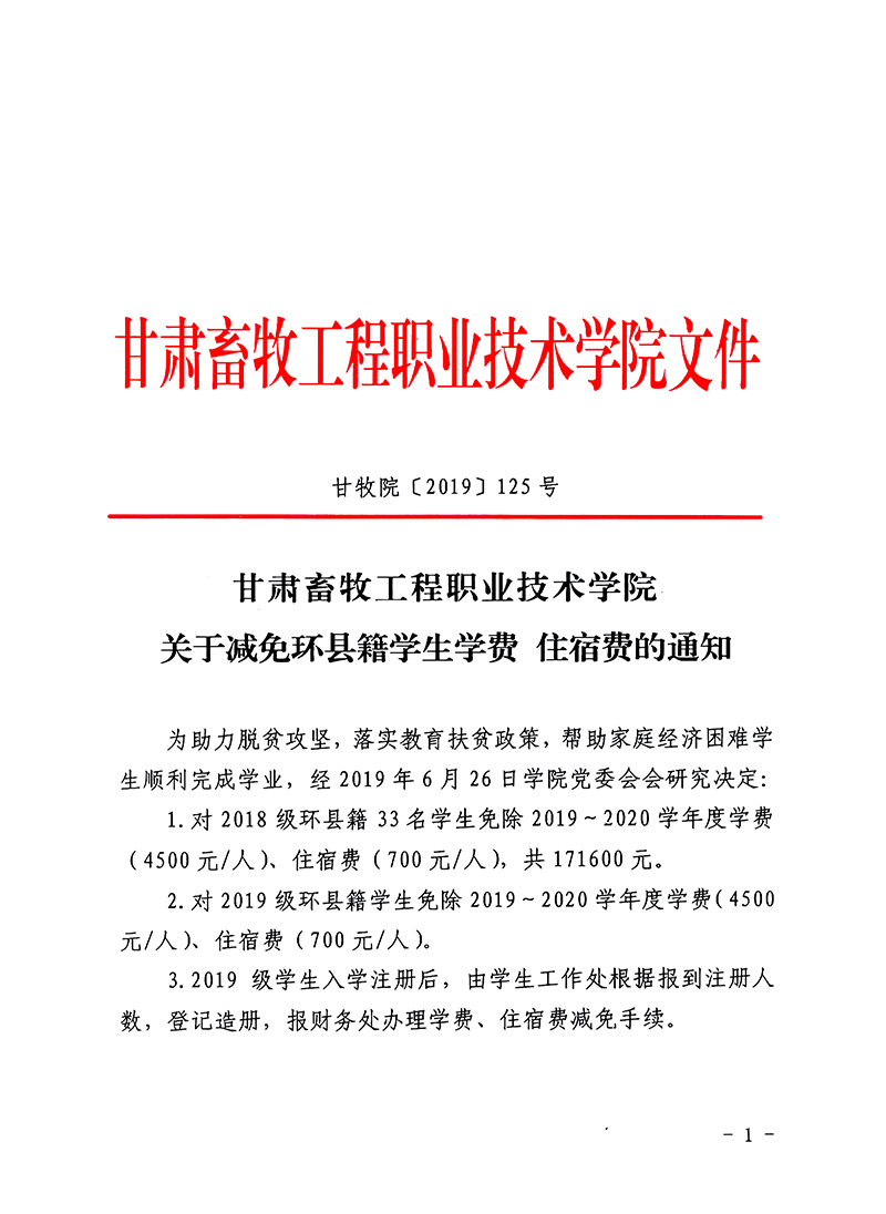 学校加大对农村特别是贫困地区定向招生力度,建立“奖、助、补、免”多位一体资助体系,保障家庭经济困难学生顺利入学并完成学业。2013年以来,为建档立卡户学生4230人次发放奖助学金2830万元。开辟环县学生招生绿色通道,优先选择专业,免除学费和住宿费,2018年至2021年,共招收环县籍学生139人,免除学费和住宿费122.96万元。为帮扶樱桃掌村、代掌村考入高校的152名大学生发放助学金15.2万元。按照《甘肃省实施“9+1”精准扶贫教育专项支持计划》要求,学校制定《家庭经济困难学生“双零”培养实施意见》,先后与大北农集团等10余家企业签订“双零”模式校企合作协议,成立“大北农班”等校企合作班,实行零学费就学、零距离就业培养模式,先后有300多名学生通过“双零”培养,零学费完成学业,并在校企合作企业零距离就业,实现“培养一人、输出一人、脱贫一户”的目标。