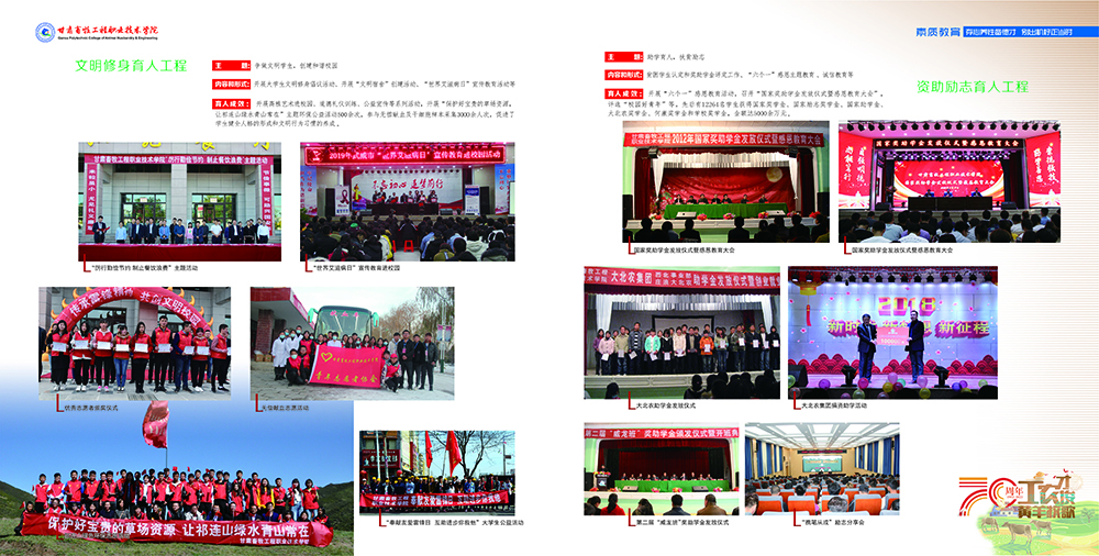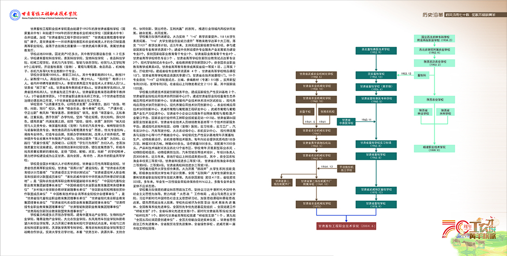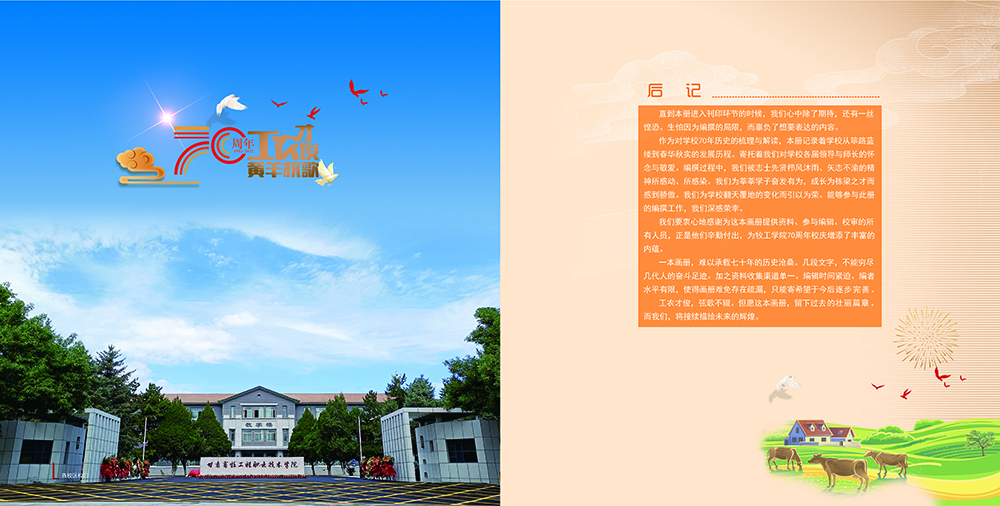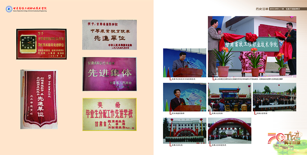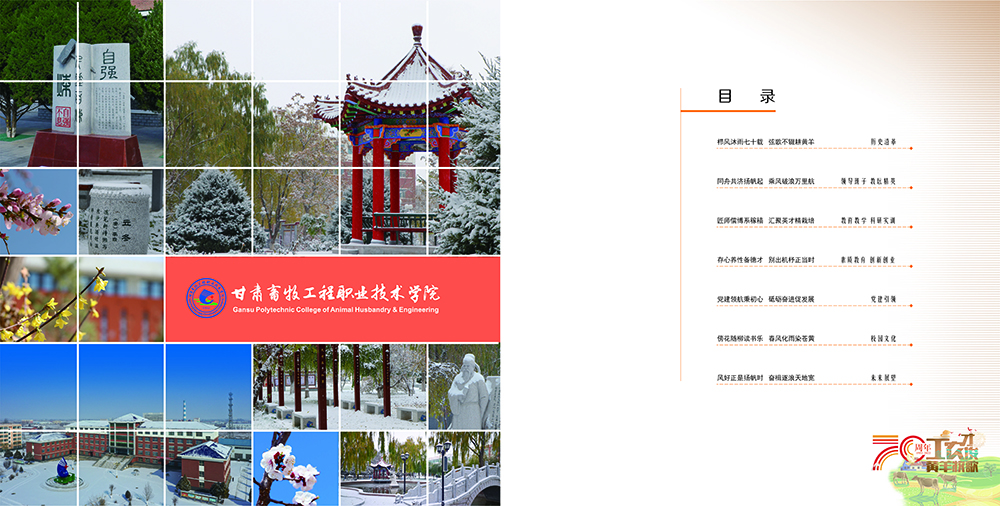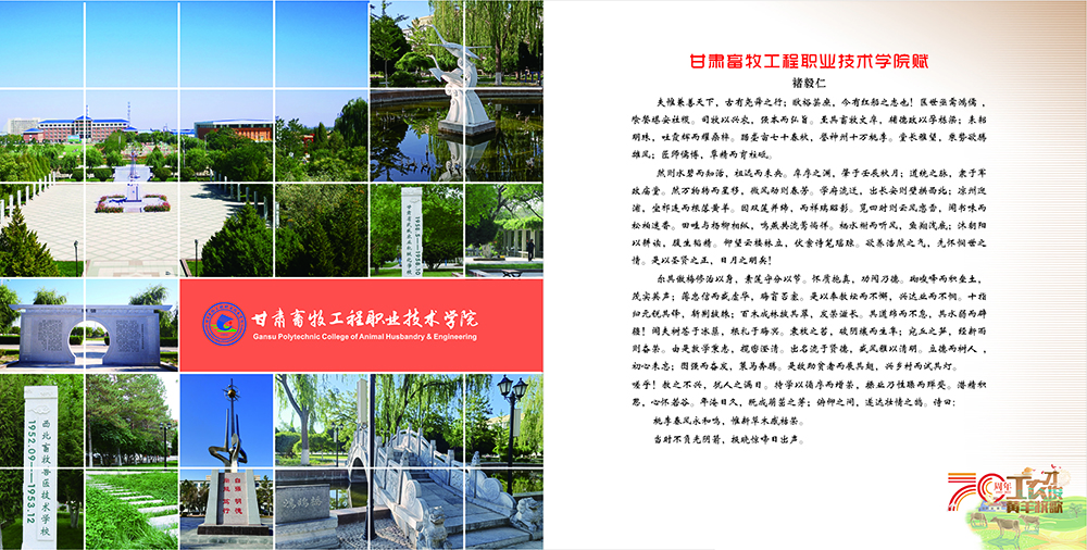 岁月如歌,春华秋实砥砺沧桑,弦歌不辍薪火相传,赓续华章值此喜迎70年校庆之际学校全体师生员工向多年来一直关心和支持学校建设发展的各级领导、社会各界朋友教育同仁和广大校友致以崇高的敬意和衷心的感谢“甘肃畜牧工程职业技术学院印象画册”邀您与我们共同见证风雨七十载!