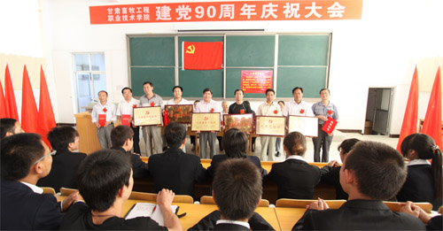 院党委书记张文兴在庆祝大会上讲话。他在回顾党的光辉历史,缅怀革命先烈之后,肯定了我院各级党组织和党员在学院建设发展中所做的贡献;同时指出,学院《十二五发展规划及远景目标》,明确提出了“把学院建设成为具有行业与区域特色的国家骨干高职院校”的奋斗目标,这实现这一目标,一定要有“不进则退、慢进也是退”的忧患意识,切实增强紧迫感、责任感和使命感, “聚精会神搞建设,一心一意谋发展”。并要求要进一步加强党的建设和思想政治工作,为建设文明、高雅、和谐、充满生机与活力的现代大学而不懈奋斗。要求全体党员要加强党员意识,坚定理想信念,真正从思想上入党,真正成为坚持理想信念、坚持根本宗旨、坚守党的纪律、坚持“两个务必” 的先锋战士,并保持先进性。要求要深入开展创先争优活动。围绕中心、抓住主题,在推进专业学科建设、促进科学发展中创先争优,在推动教育教学改革、提高教育教学质量中创先争优,在培养优良校风、教风和学风中创先争优,在服务师生工作、学习、生活,建设和谐校园中创先争优。希望全体共产党员都牢记宗旨,增强使命感,以奋发有为的精神状态和干事创业的工作作风,勤勤恳恳,再接再厉,为学院各项事业发展做出新的更大的贡献!