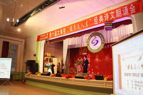 为纪念中国共产主义青年团成立90周年,进一步坚定广大团员青年爱党、爱祖国、爱社会主义的理想信念,培养爱国主义情怀,加快学习型校园建设,营造书香气息浓郁,学术氛围浓厚的校园文化环境,提升大学生的人文素养,提高文学认知能力和鉴赏水平。2012年5月3日晚,学院团委、学生会主办的“青春永向党”第六届大学生“读书与人生”经典诗文朗诵会在西校区大学生活动中心隆重举行,学院副院长杨孝列和1000名多青年学生观看了比赛。
