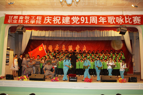 2012年6月28日晚,由学院工会、团委、学生会主办的“团结青年跟党走,继往开来谱新篇”庆祝中国共产党成立91周年歌咏比赛在西校区大学生活动中心隆重举行。院长梁盛泉、常务副书记段生成、副院长姜聪文、 杨孝列,各处(室)、系(部)负责人及各系团总支书记、全院青年学生近1000人观看了比赛。