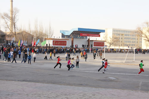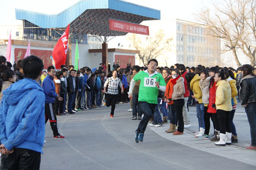 在刺骨的寒风中,在同学们的热烈欢呼中,万米异程接力第一棒率先出发。今年的万米异程接力以系为单位,分别由5名女生(每人400米)和10名男生(每人800米)组成。经过的激烈角逐,兽医系代表队以24′38″的好成绩获万米异程接力赛冠军,车辆工程系代表队获得亚军,畜牧系代表队获得季军。