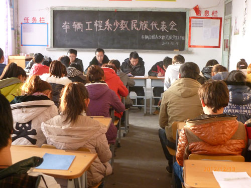 为进一步加强我系少数民族学生的教育管理,维护校园和谐稳定,促进少数民族学生健康成才,车辆工程系党总支于2012年12月13日下午召开了全系少数民族学生工作会,会议由系党总支副书记席爱学主持。