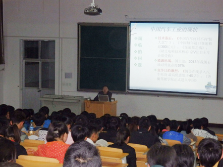2014年4月9日晚,汽车之友协会特邀车辆工程系副主任杨志平,在东校区新教学楼阶梯教室为车辆工程系2013级新生和汽车之友协会全体成员作了以普及汽车就业前景专业知识的讲座。 杨老师以汽车行业现状和中国汽车专业前景为主题,重点分析了中国汽车专业的前景和未来的发展方向,使同学们对汽车行业的现状和就业方向有了一定的了解,对所学的专业有了进一步的认识。 (车辆工程系 白仕珑报道)