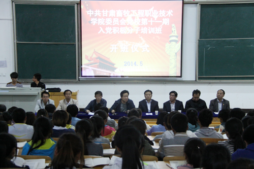 5月19日晚,学院业余党校第十一期入党积极分子培训班正式开班。党校副校长、副院长杨孝列,副院长王祎才,党委宣传统战部部长贺得飞、纪检监察室主任杨世禄,各系党总支负责人参加了开班仪式。贺得飞主持会议。