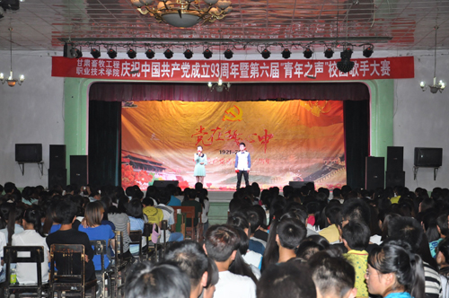 7月1日晚,由学院团委主办、大学生艺术团协办的庆祝中国共产党成立93周年暨第六届“青年之声”校园歌手大赛在西校区大学生活动中心举行。院长梁盛泉、副院长杨孝列,张延贵、各系党总支书记、党委宣传部、学生工作部、团委负责人和千余名师生齐聚一堂观看了比赛,共庆伟大的中国共产党93岁华诞。