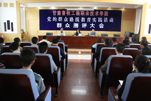 9月29日上午,学院召开党的群众路线教育实践活动群众测评大会。省委第二十督导组组长,甘肃社会主义学院党组副书记、常务副院长周永革,省职业教育中心干部林兆辉出席会议。学院各总支、支部选派的50名群众代表参加了测评大会。