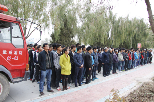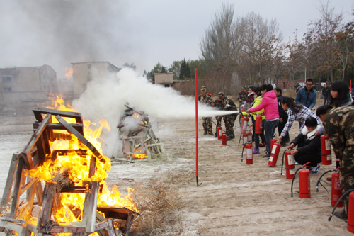 为提高学生在危险时刻的灭火自救能力,11月11日下午,保卫处联合学生工作部、总务处、东区各系在东校区锅炉房南空地组织进行了消防灭火演练活动。院长梁盛泉,副院长张延贵亲临现场。凉州区消防中队、黄羊镇消防队选派6名消防队员现场指导演练。
