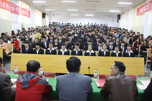 11月14日下午,学院与新希望六和股份有限公司校企合作第一届“新希望六和班”成立仪式在西校区2号教学楼101阶梯教室举行。