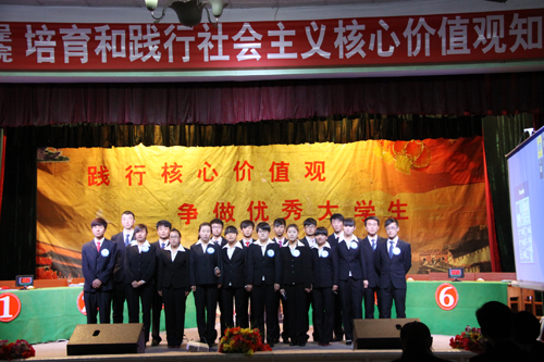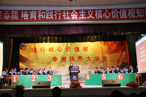 11月17日晚,学院团委在西校区大学生活动中心举办了以“践行核心价值观,争做优秀大学生”为主题的培育和践行社会主义核心价值观知识竞赛。副院长杨孝列、团委负责人和全体学生干部600余人观看了比赛。