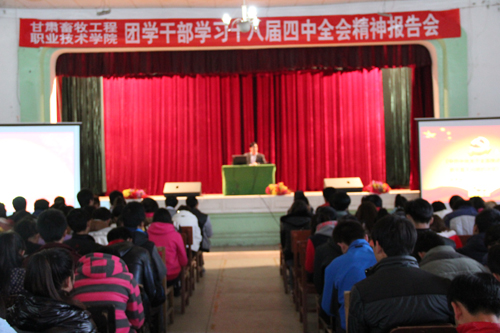11月20日下午,在学院青年马克思主义者培养工程暨业余团校第七期团学干部培训班举办之际,院团委邀请基础部党总支书记、思想政治教研室主任周凤雄副教授以中国共产党十八届四中全会精神和《中共中央关于全面推进依法治国若干重大问题的决定》为主要内容为全院团学干部作了专题报告。