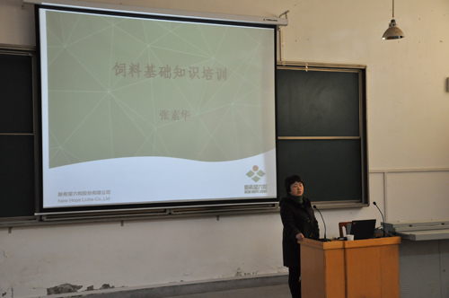 兽医系邀请张素华为“新希望六和班”学员作专题讲座 12月15日下午,兽医系特邀新希望六和股份有限公司西北片区技术部高级营养配方师、国家级突出贡献中青年专家张素华,为“新希望六和班”作了题目为“饲料基础知识”的培训讲座。 张素华从饲料中的营养物质、分类、加工工艺的多个方面为大家讲述了饲料的基础知识。 兽医系“新希望六和班”全体成员和兽医系2014级全体班团干部参加了培训。 (兽医系 田启会报道)