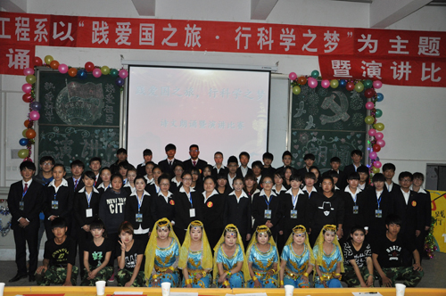 电子信息工程系举办“践爱国之旅,行科学之梦”诗文朗诵暨演讲比赛 2014年12月18日下午,电子信息工程系在东校区阶梯教室举办了以“践爱国之旅,行科学之梦”为主题的诗文朗诵暨演讲比赛。 经评比,乔挺、马春芳获得一等奖,刘霞、王旭东获得二等奖,张钦、佘郎燕、赵兴兴获得三等奖,贺国鹏、镡旭妹等人获得优秀奖。 (电子信息工程系 贾德旺报道)