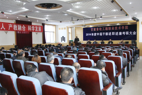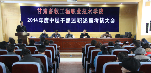 12月27日上午,2014年度学院中层干部述职述廉考核大会在办公楼一楼会议室举行。