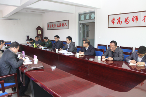 实地检查后召开汇报会。院长梁盛泉代表学院从基本情况、后勤服务保障、存在的困难和建议三个方面做了汇报。副院长张延贵汇报了学院自查工作的开展情况、自查中发现的问题及整改落实情况。