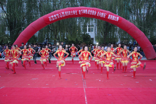 5月21日晚,由学院团委、学生工作部、基础部和院学生会主办的学院2015年大学生“走下网络,走出宿舍,走向操场”健美操比赛在西校区举行。院长梁盛泉、副院长姜聪文、杨孝列、张延贵、王祎才、部分部门领导、部分教职工及学生共1200余人观看了比赛。