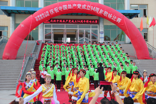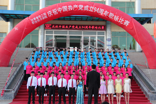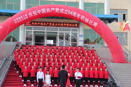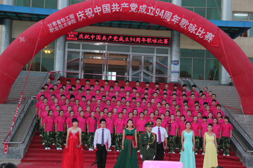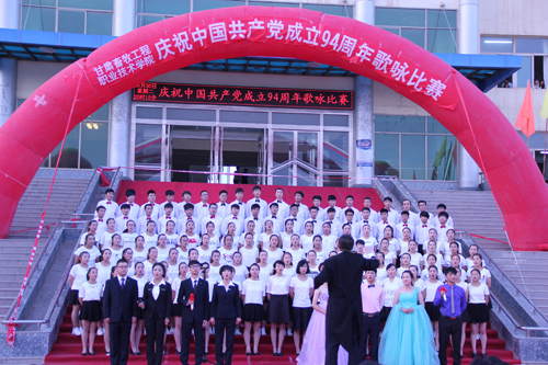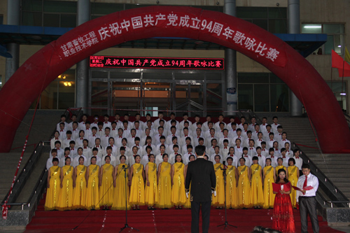 在中国共产党第94个生日来临之际,6月30日晚,甘肃畜牧工程职业技术学院在东校区举办“庆祝中国共产党成立94周年” 歌咏比赛。1000余名师生观看了比赛。