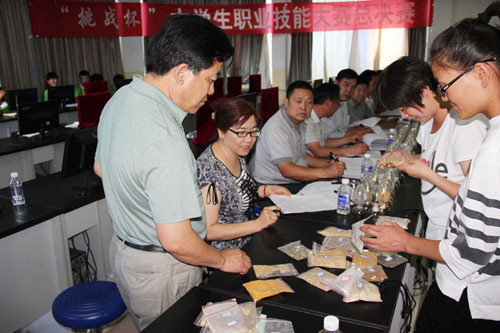 本次比赛设有计算机辅助设计(SolidWorks)、饲草饲料识别、汽车故障检测仪的使用方法(KT660)、食品检验工-EDTA络合法测定Ca、家畜肌肉注射、机床电器控制电路板的制作、英语口语竞赛等工种(项目)。比赛由各系承办,1000余名同学参加初赛环节,从中选拔出400名同学参加“挑战杯”决赛。