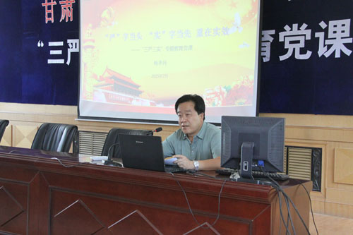 2015年7月16日下午,副院长杨孝列为学院全体党员及中层以上领导干部讲题为《“严”字当头,“实”字当先,重在实效》的专题教育党课。党课内容主要结合2014年党的群众路线教育实践活动,从 “三严三实”教育的认识问题;对“三严三实”是一个党员领导干部立身之本、为政之道、成事之要的理解和把握;我们要以严的精神、实的作风,“两手抓、两手硬、两促进”,见实效等三个方面进行了讲解。