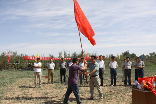 施工单位甘肃第一安装工程有限公司负责人代表、监理单位四川建充工程项目管理有限公司负责人代表先后进行了表态发言。之后,杨孝列为施工单位授旗,王祎才宣布葡萄栽培实训基地一期工程智能玻璃连栋温室正式开工。