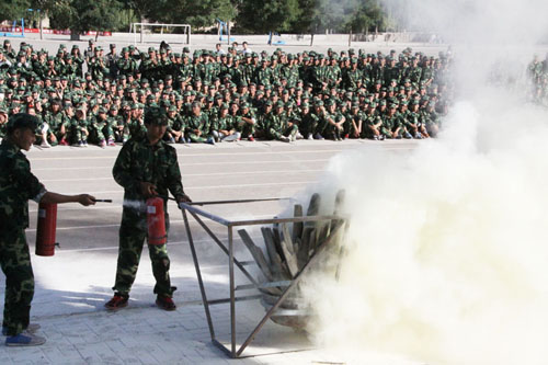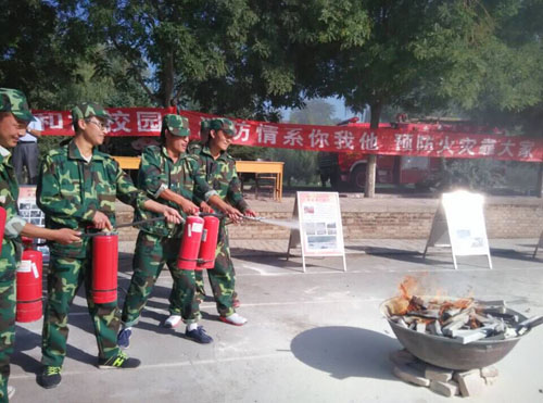 为提高师生员工消防安全意识,掌握必备的消防安全知识,培养师生的自我防护能力,减少和避免突发火灾事件中伤害事故发生, 9月14日下午,学院保卫处、学生工作部、总务处联合武威市消防支队凉州区大队分别在学院东、西校区操场举行了消防灭火演练活动。