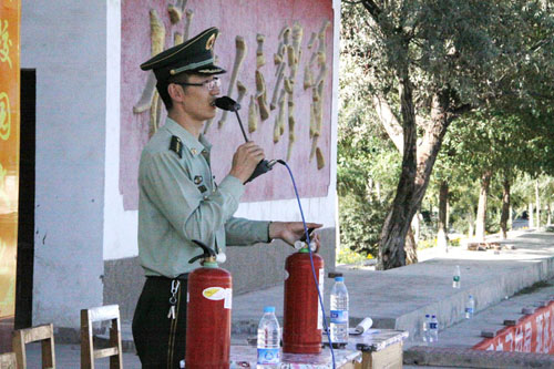 演练活动分东、西校区分别由学工部副部长、团委副书记王哲毓和保卫处副处长张发荣主持。武威市消防支队凉州区大队参谋何睿、副中队长王伟伟分别给东、西校区2015级新生和各系学生代表做了火情报警基本常识、寝室楼层发生灾情时的疏散、逃生常识进行讲解,就如何正确使用灭火器做了演示。随后,学生们在消防官兵的指导下进行了实战演练。