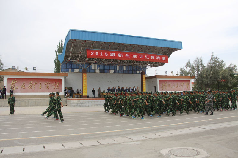 9月18日下午,学院举行2015级新生军训汇报表演。副院长杨孝列、张延贵、王祎才,甘肃省军区教导大队参谋吴铭,各部门负责人、各系辅导员、新生班主任及部分师生观看了汇报表演。