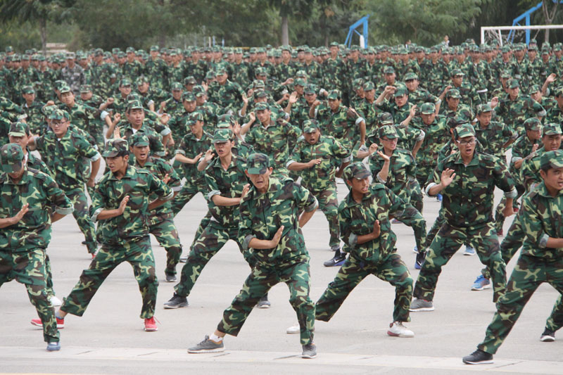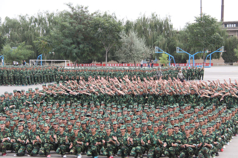今年军训中,新入校的2015级2800多名学生进行了为期10天的军训,由甘肃省军区教导大队20名教官承训。今天的汇报表演中,承训教官将全部参训新生分成12个方队,其中6个方队参加了分列式汇报表演,6个方队参加了会操表演。