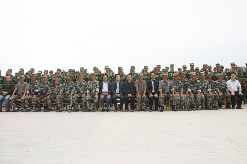军训汇报表演结束后,学院领导与全体教官合影留念。