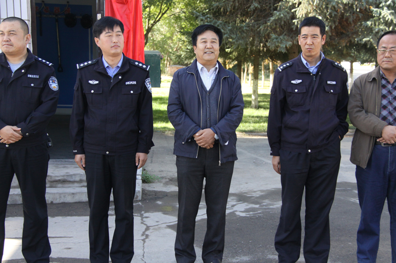 张延贵、代龙山、段天青、席爱学共同为学院警务室揭牌。揭牌仪式后,学院领导陪同派出所领导实地检查了学院警务室。