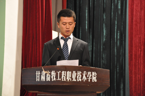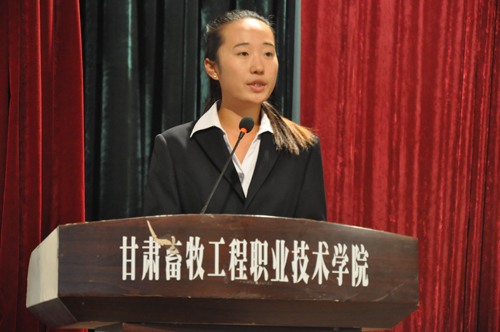 新生代表兽医15.2班陈佳兵和在校生代表兽医14.4班张芳瑞言分别发言。