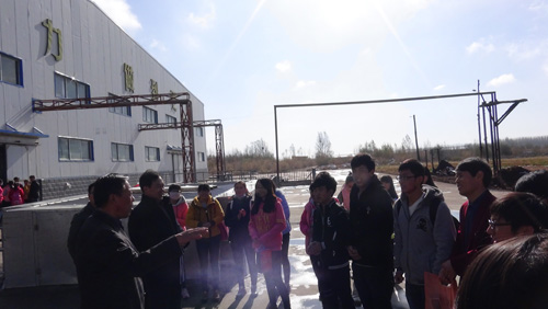 2015年10月31日上午,学院副院长姜聪文、食品科学系主任赵象忠一行4人到我院校外实习基地——甘肃威龙葡萄酒公司苏武山酒厂,看望在此实习的同学和实习指导老师。酒厂负责人和实习指导老师张斌文分别介绍了酒厂和同学们实习的情况,并带领大家参观了生产车间。